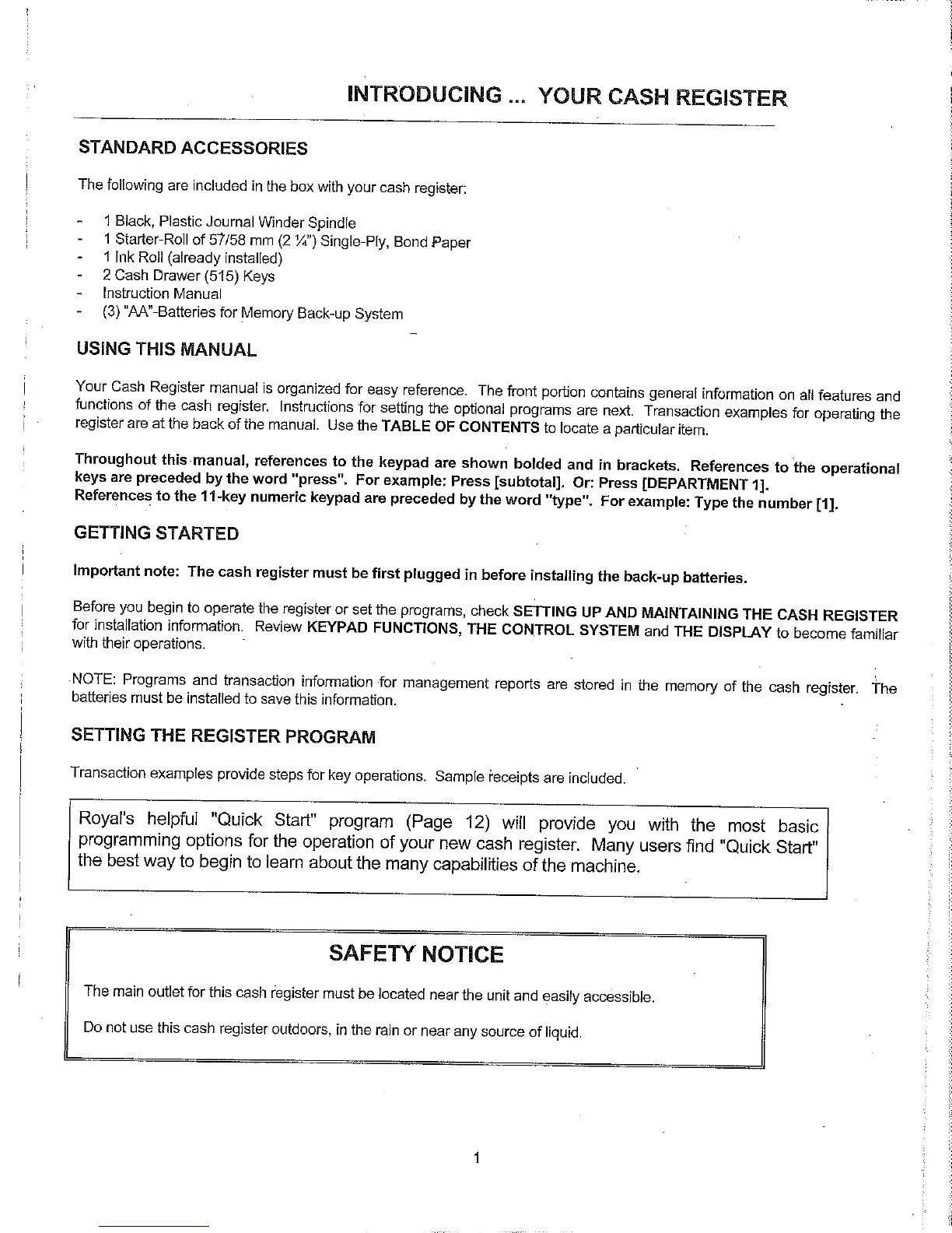 Royal 500dx - Introducing Your Cash Register; Standard Accessories; Using This Manual; Getting Started