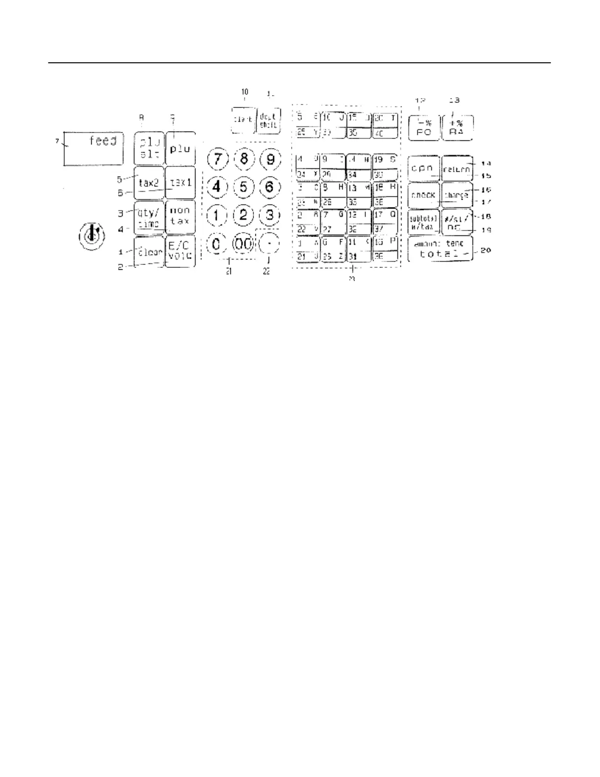 (6) Tax 1 Key [TAX 1] adds a tax amount to the sales figure according to the tax rate programmed for this key.