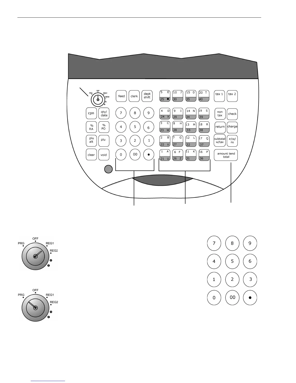 The keyboard on your cash register looks like the following:
