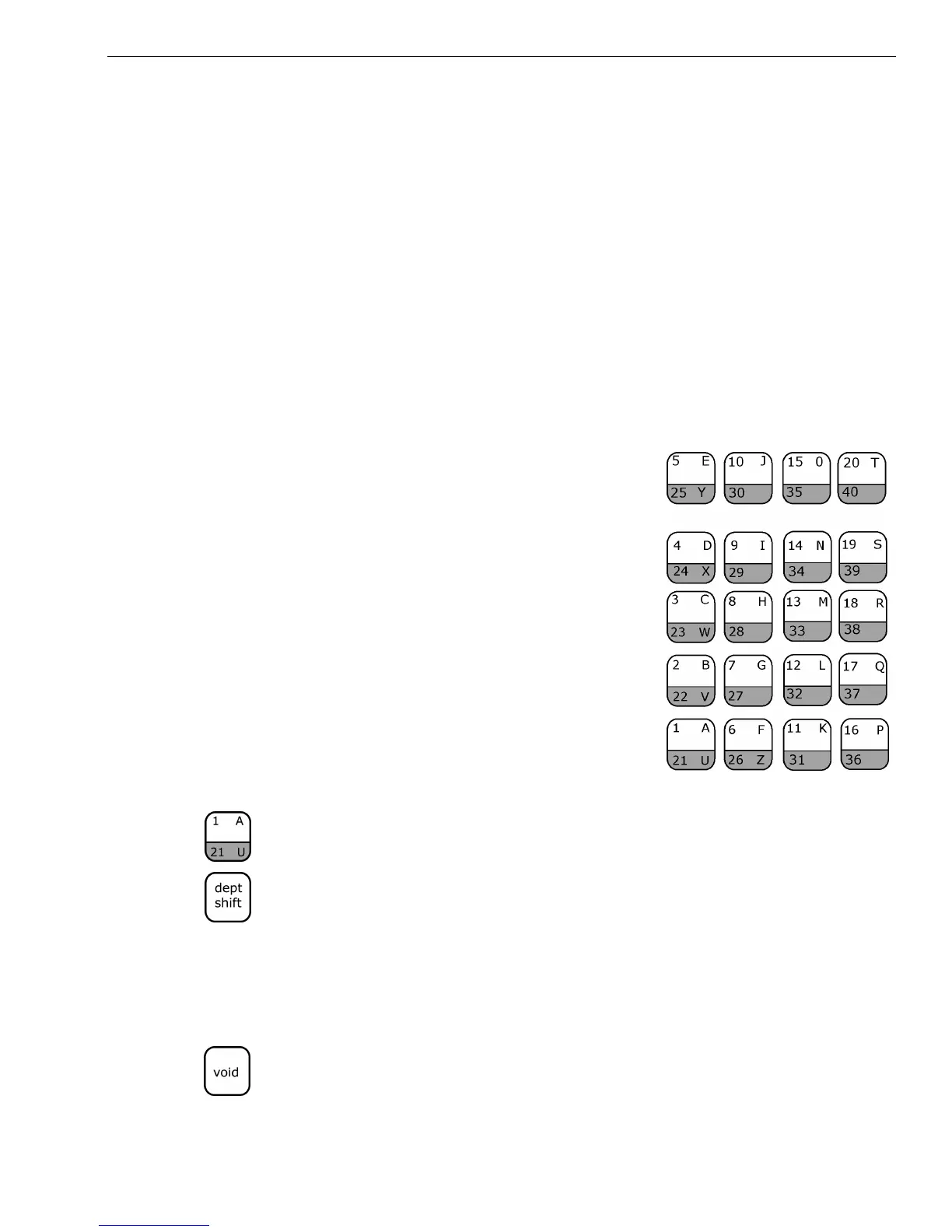 To use the letters in the lower green area of the keys, press the Dept Shift
