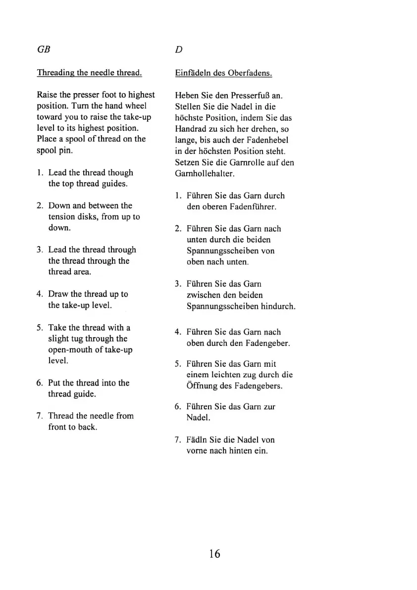 Einfadeln des Oberfadens.