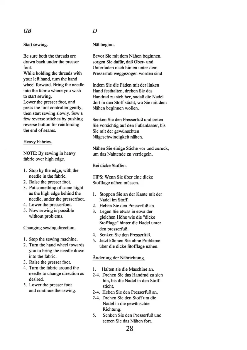 Bei dicke Stoffen.