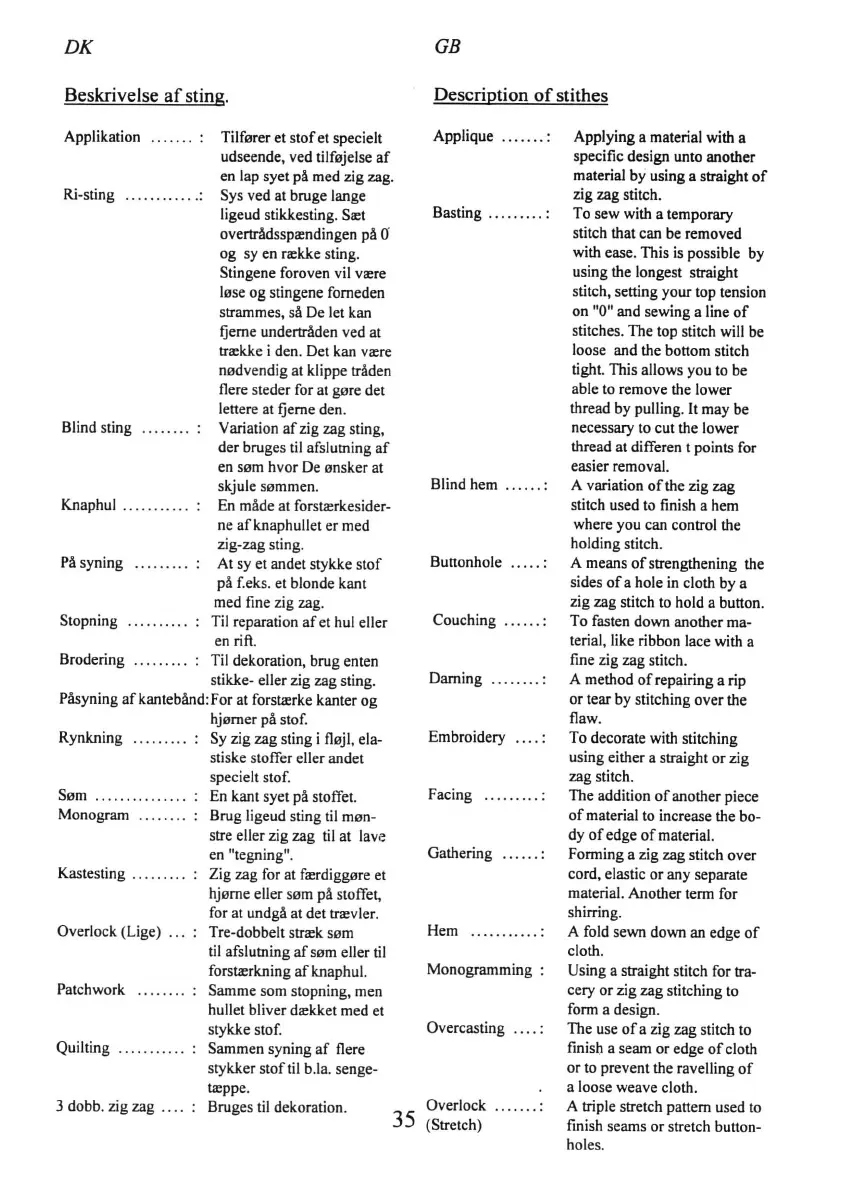 stikke- eller zig zag sting.
