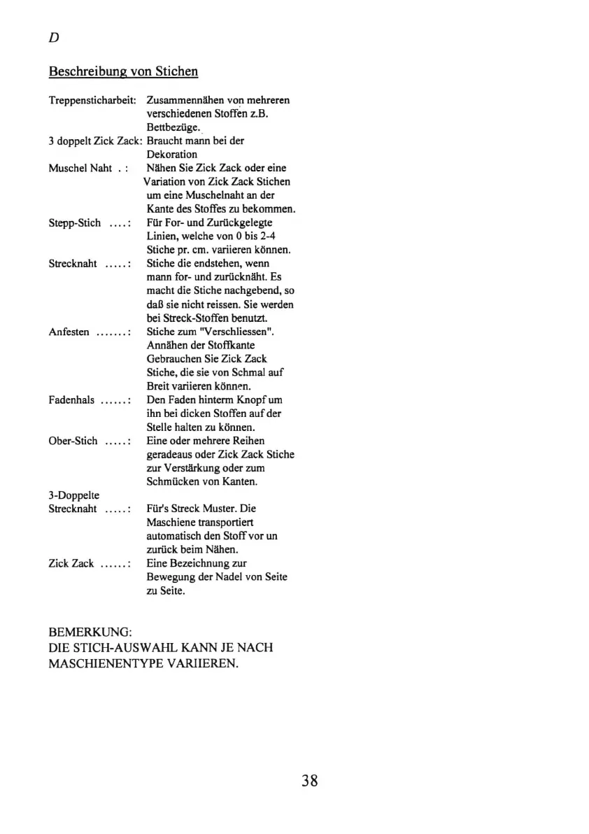 Beschreibung von Stich en