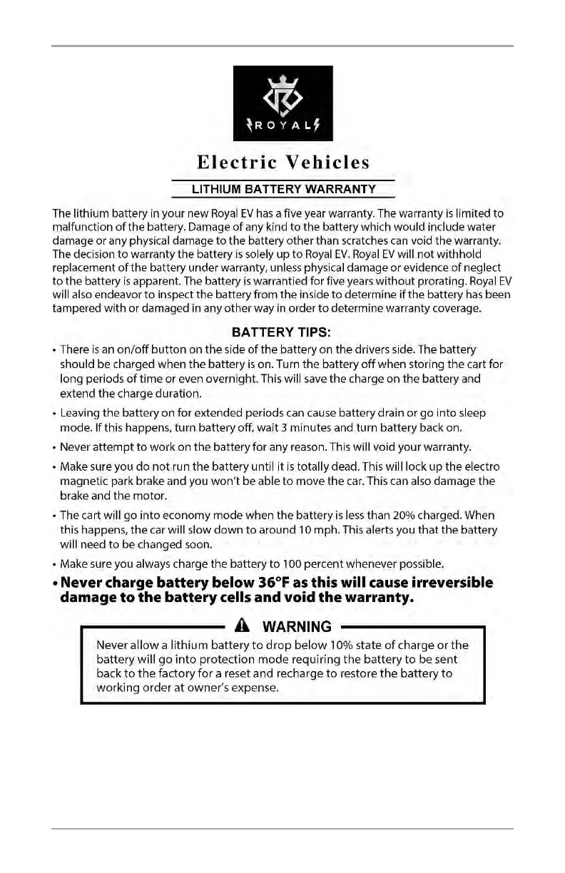 Royal A4 - Lithium Battery Warranty; Battery Tips