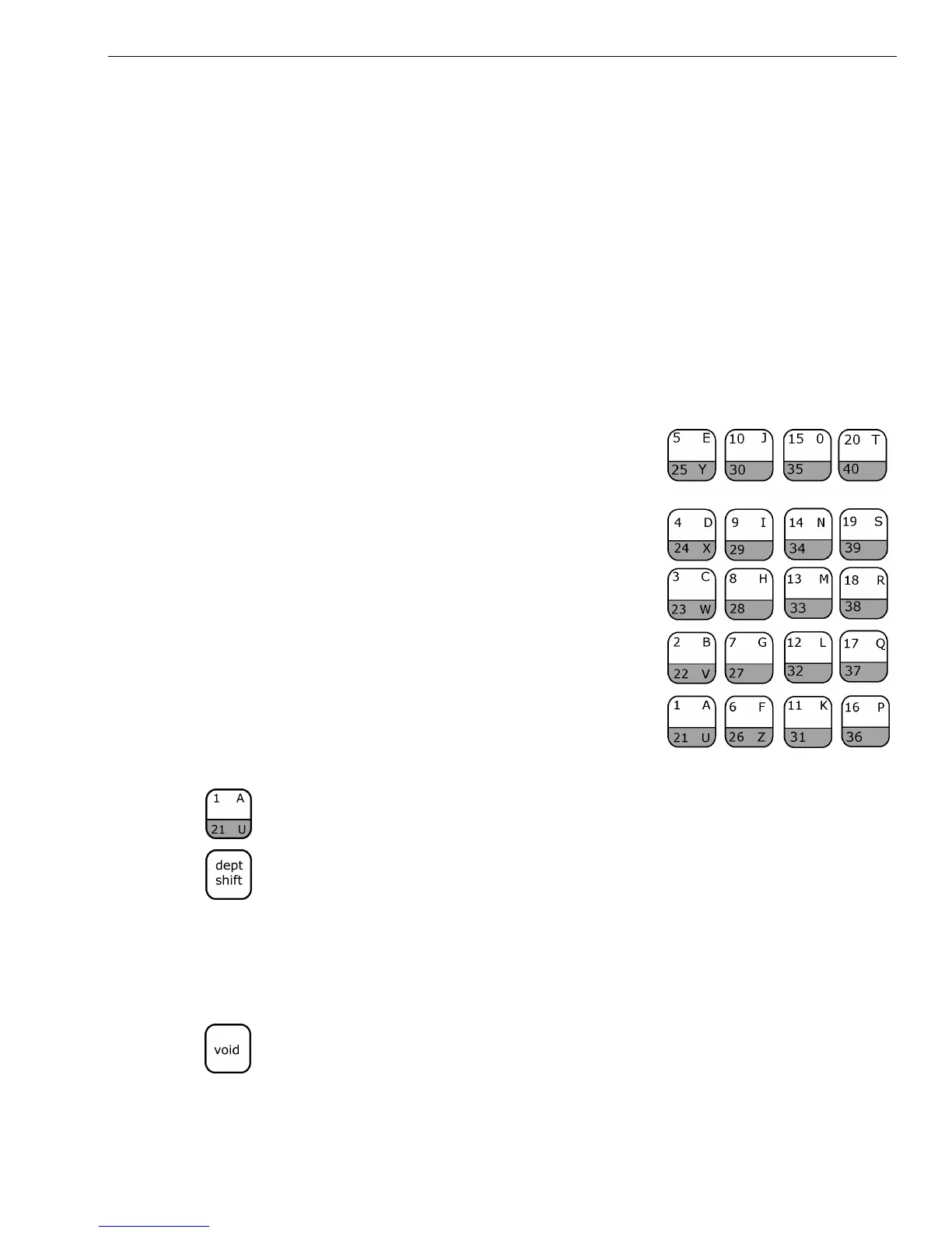 To use the letters in the lower green area of the keys, press the Dept Shift