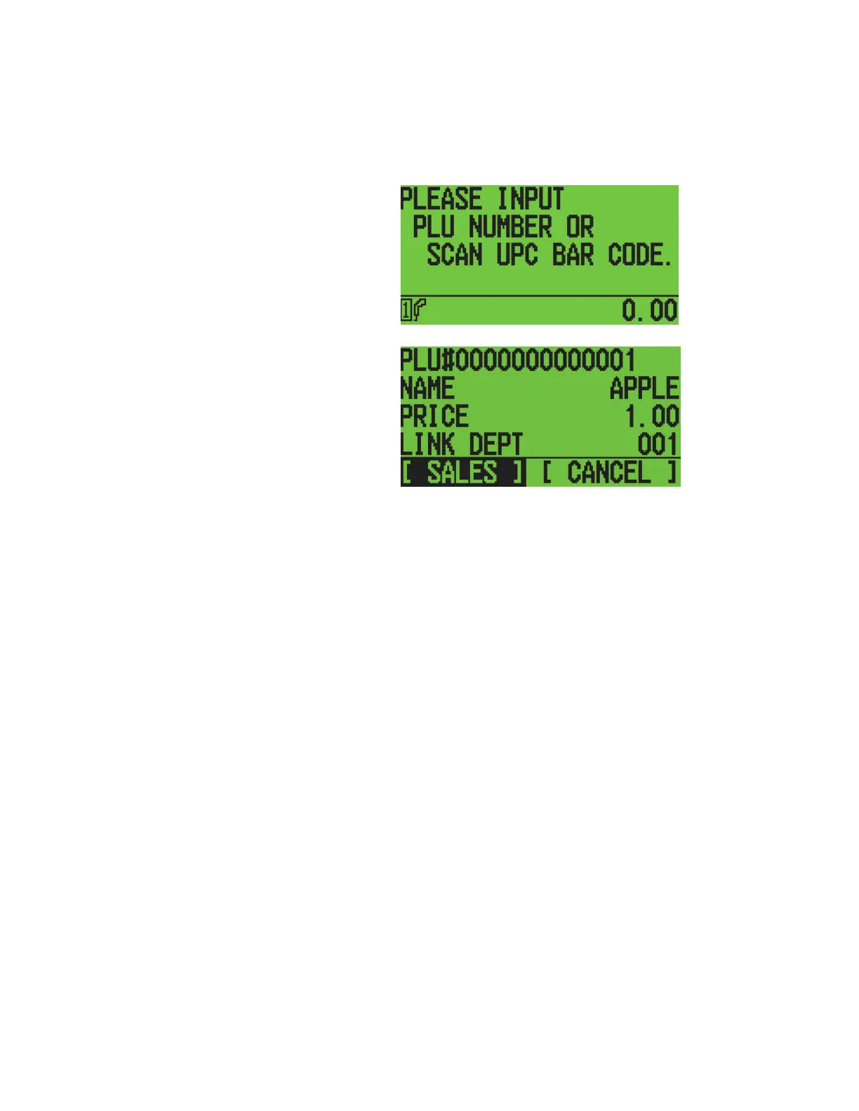 Enter PLU # ( ) + [ plu ]