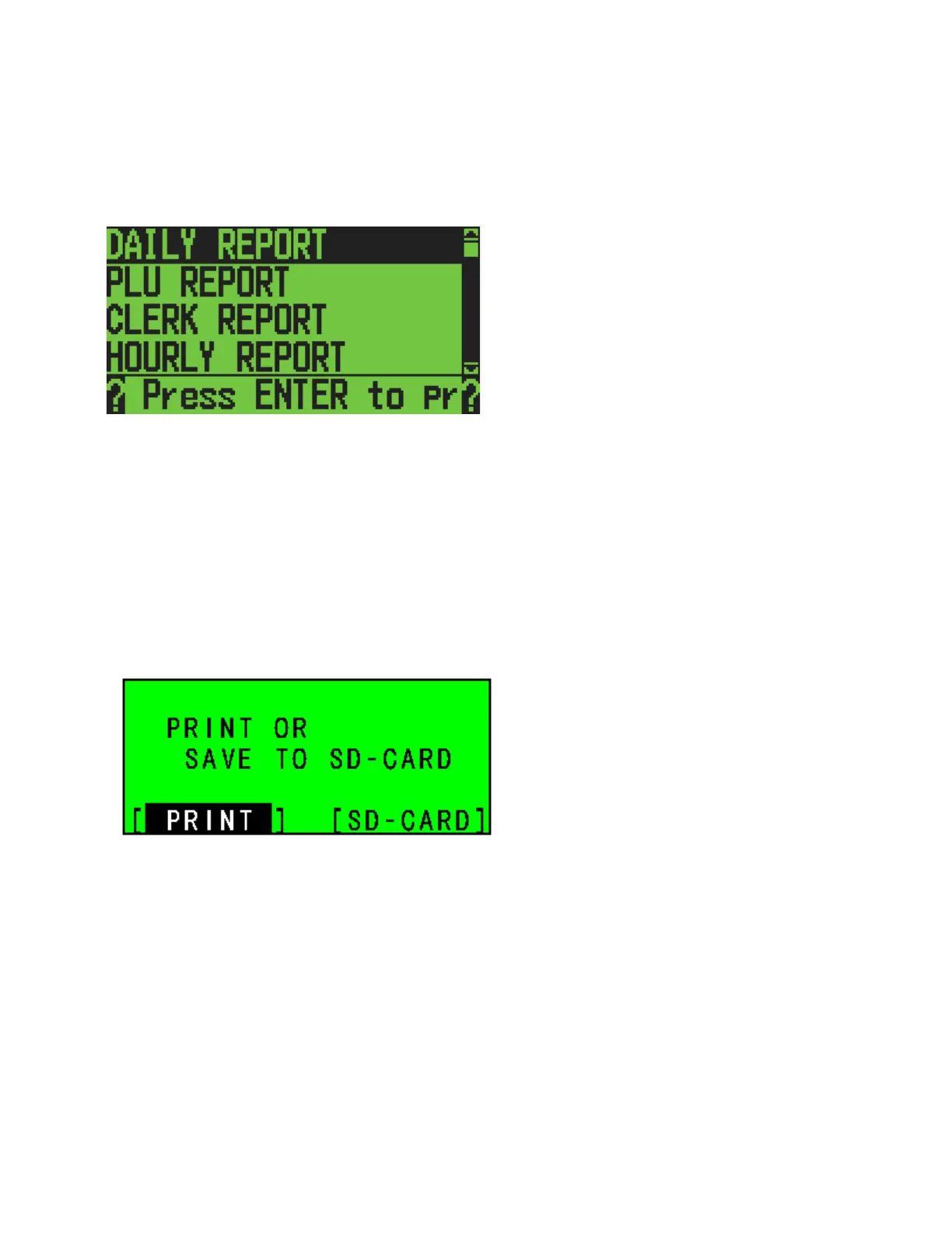 Press [ENTER] on the DAILY REPORT at Z REPORT initial menu. The ECR will ask you to