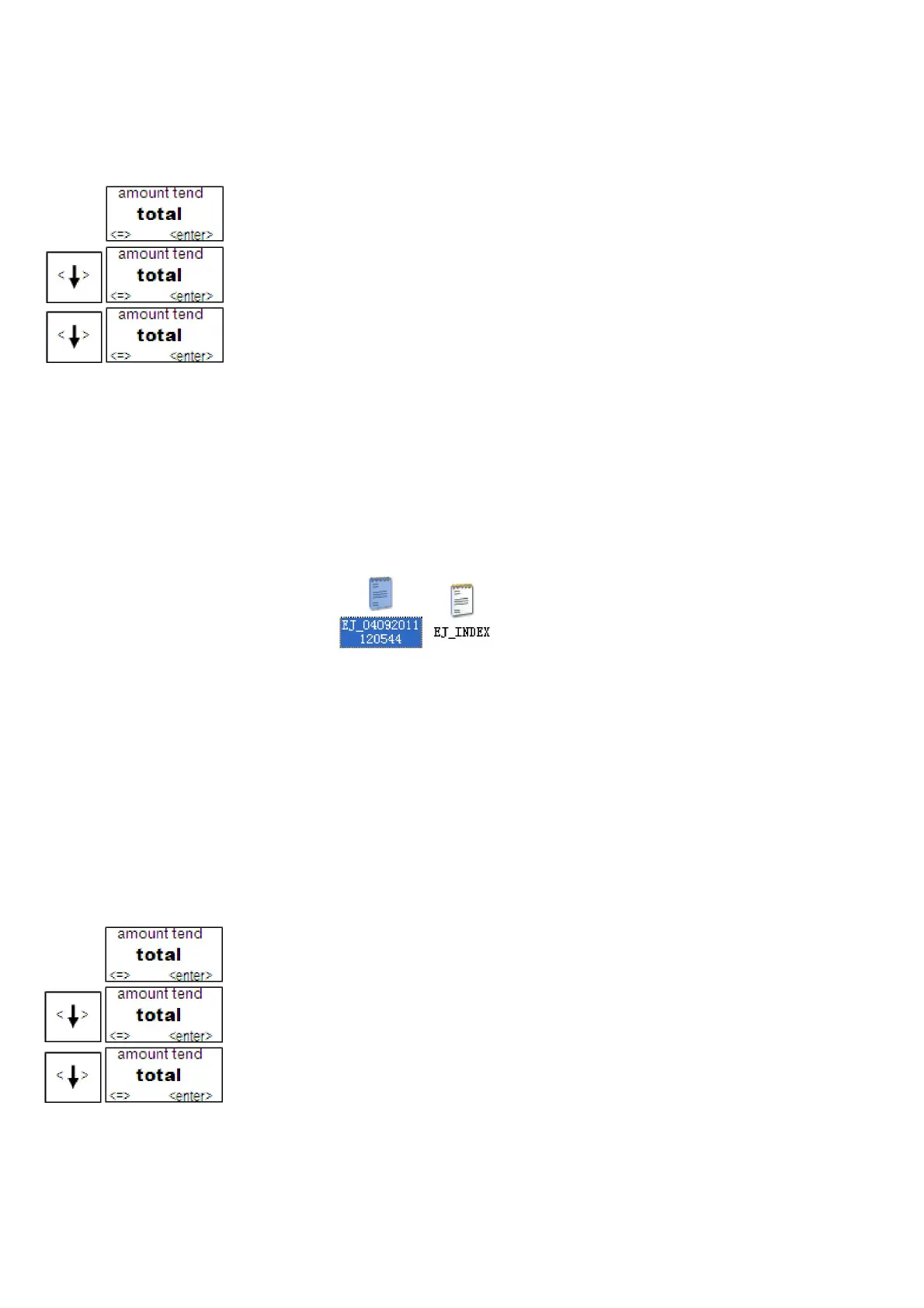 3 Press the Arrow Down key to select EJF/Receipt Report. Press the enter