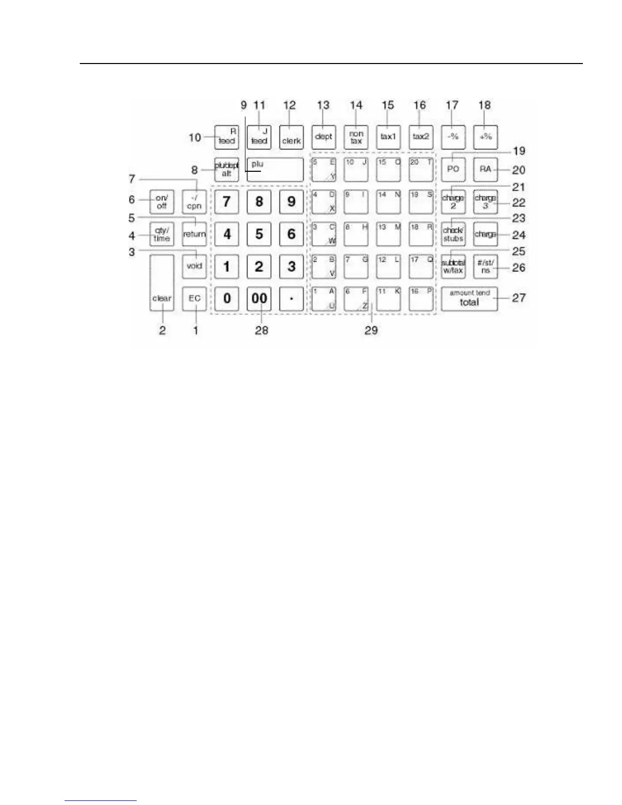 (10) Receipt Feed Key [RF] is used to advance the receipt paper.