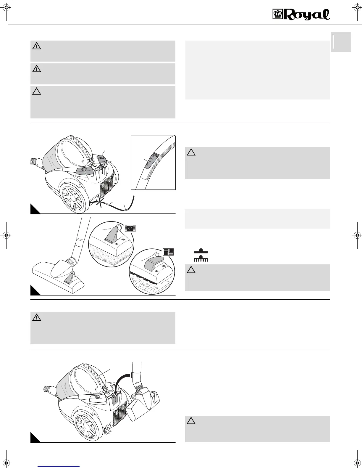 1. Schalten Sie den Bodenstaubsauger am Ein-/Aus-Schalter (Abb. 6/4)