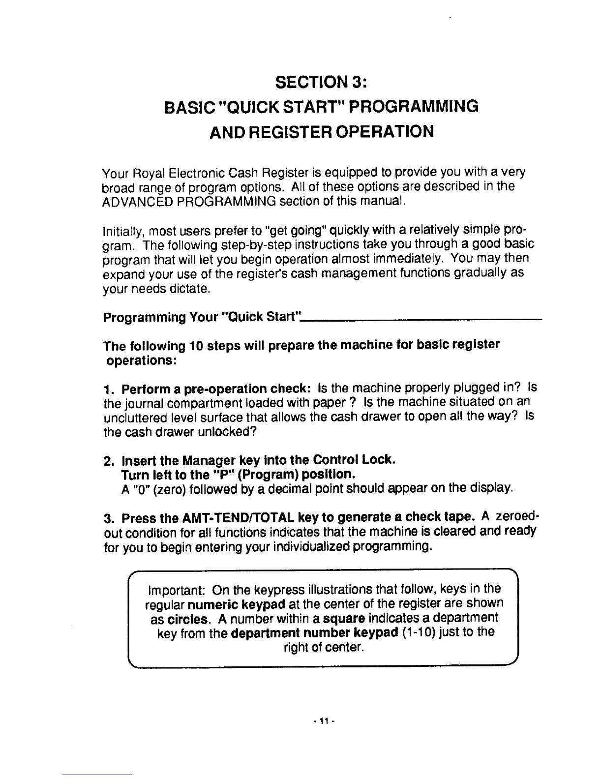 Royal CMS-482 - Basic Quick Start Programming and Register Operation; Quick Start Programming