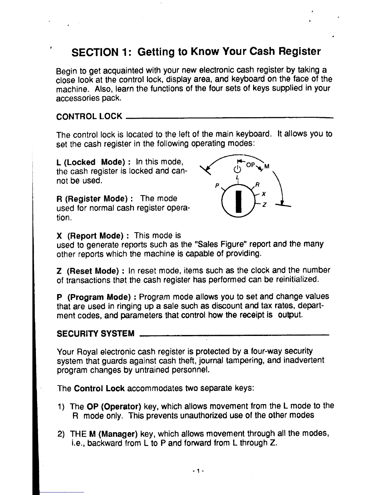 Royal CMS-482 - Getting to Know Your Cash Register; Control Lock Functionality; Security System Overview