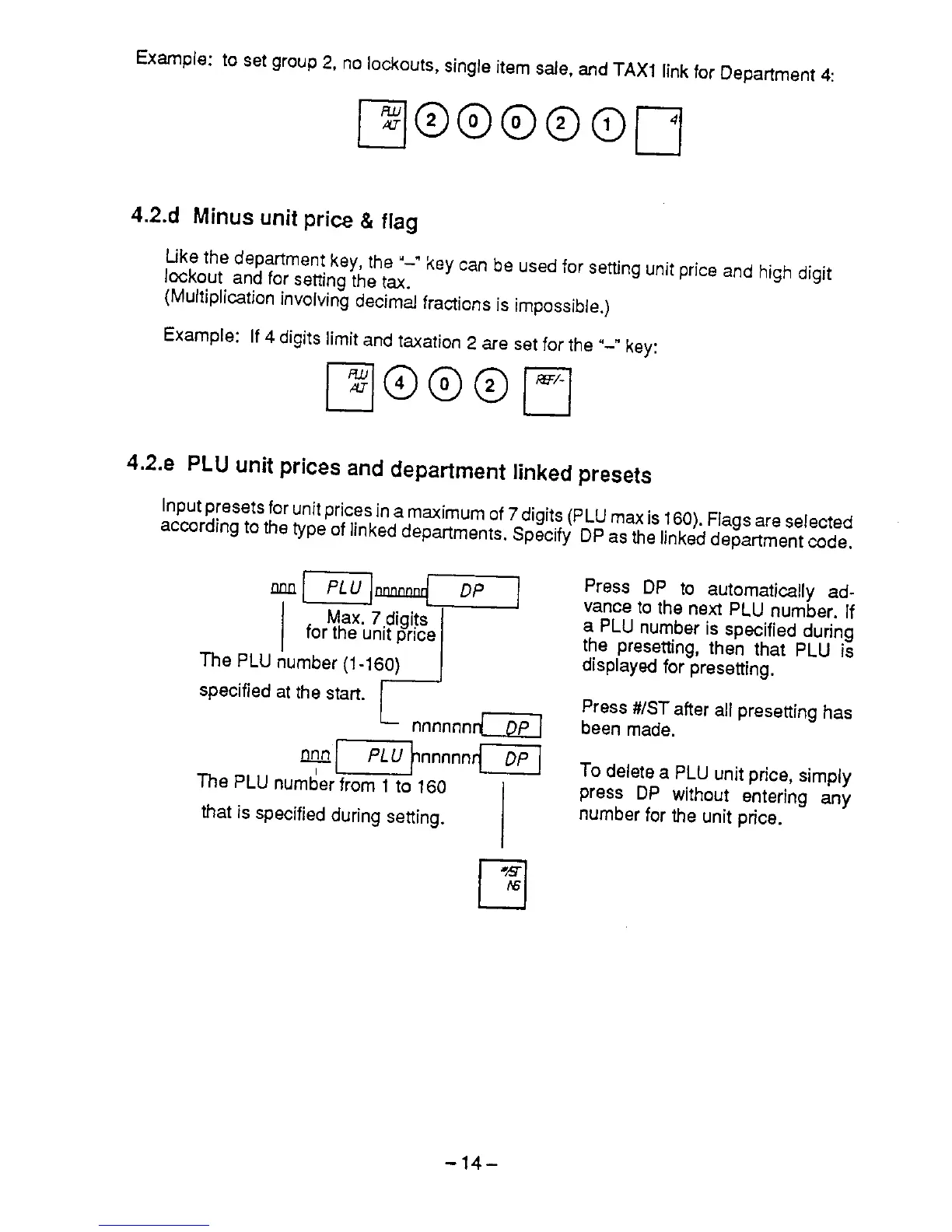 Royal CMS-8160 - Minus Unit Price and Flag; PLU Unit Prices and Department Linked Presets