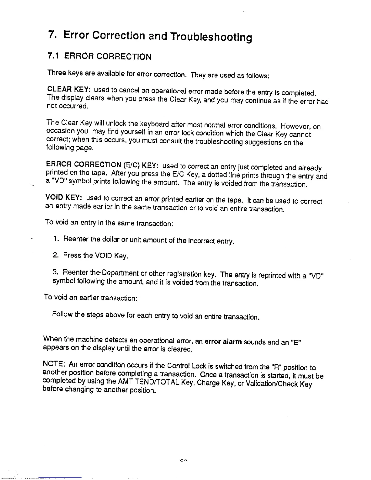 Royal CMS-8160 - Error Correction and Troubleshooting; Error Correction Keys