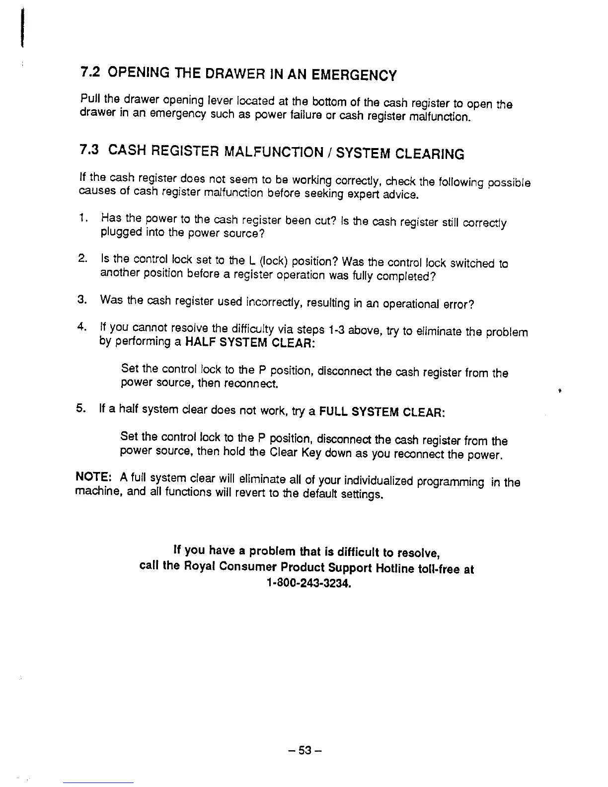 Royal CMS-8160 - Emergency Drawer Opening; Malfunction and System Clearing