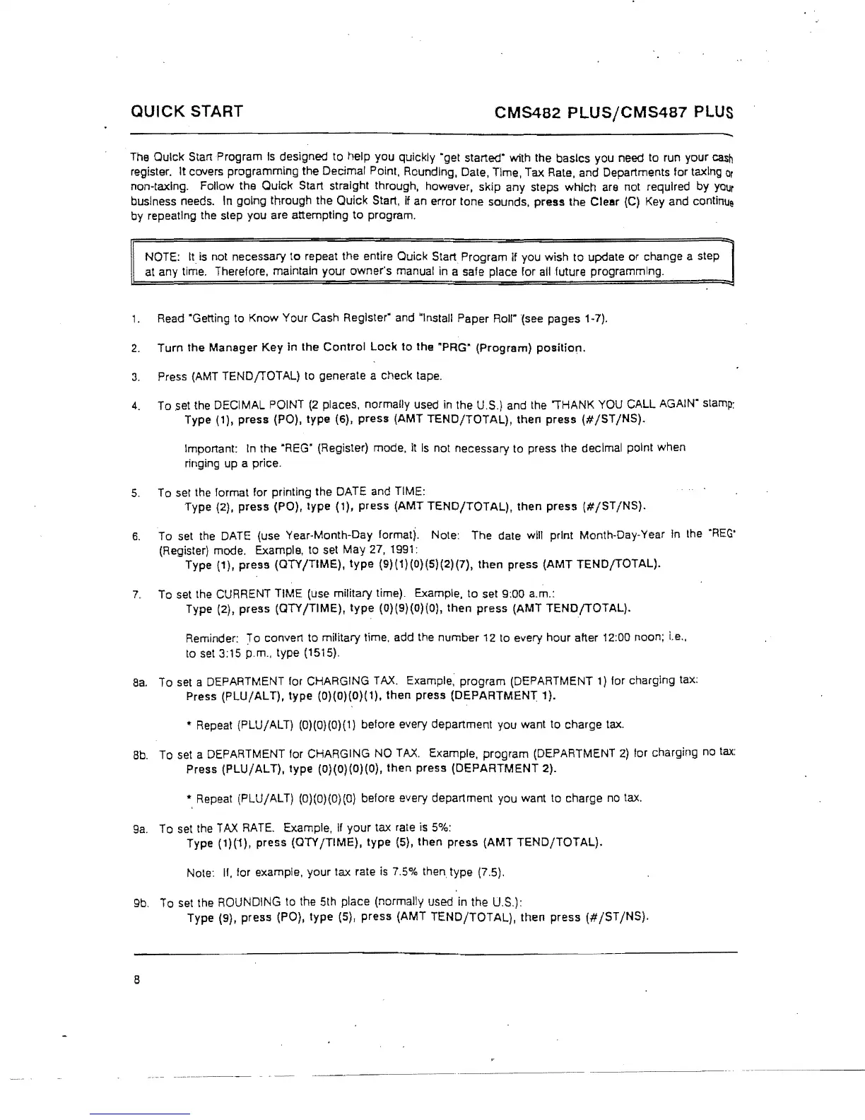non-taxing. Follow the Quick Start straight through, however, skip any steps which are not required by