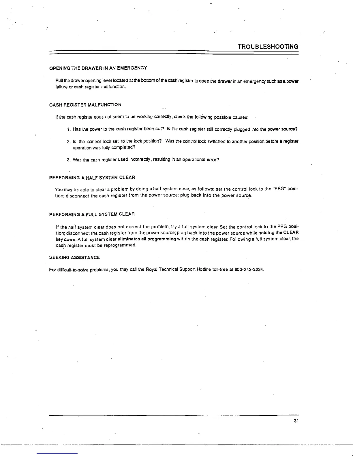 tlon; disconnect the cash register from the power source; plug back into the power source while holding the CLEAR