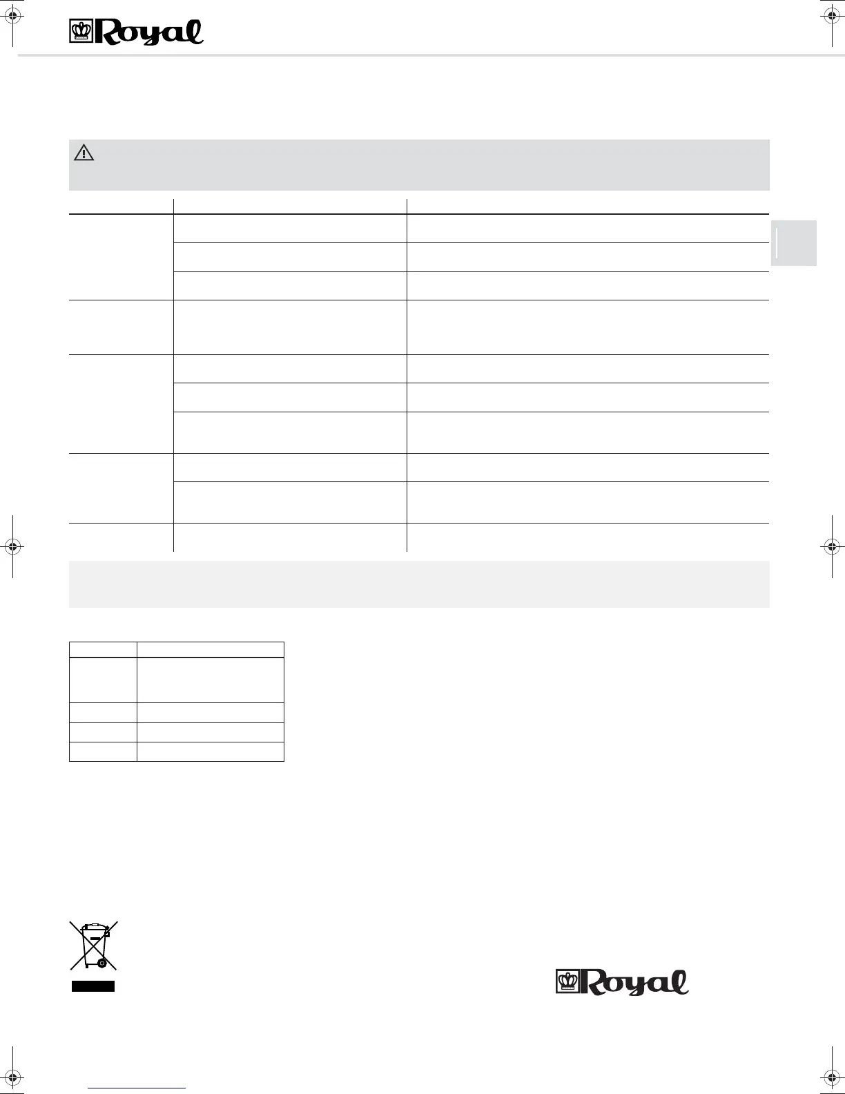 Avant de prendre contact avec un commerçant agréé Royal‚ le service après-vente Royal ou un commerce spécialisé, veuillez vérifier, en vous aidant du