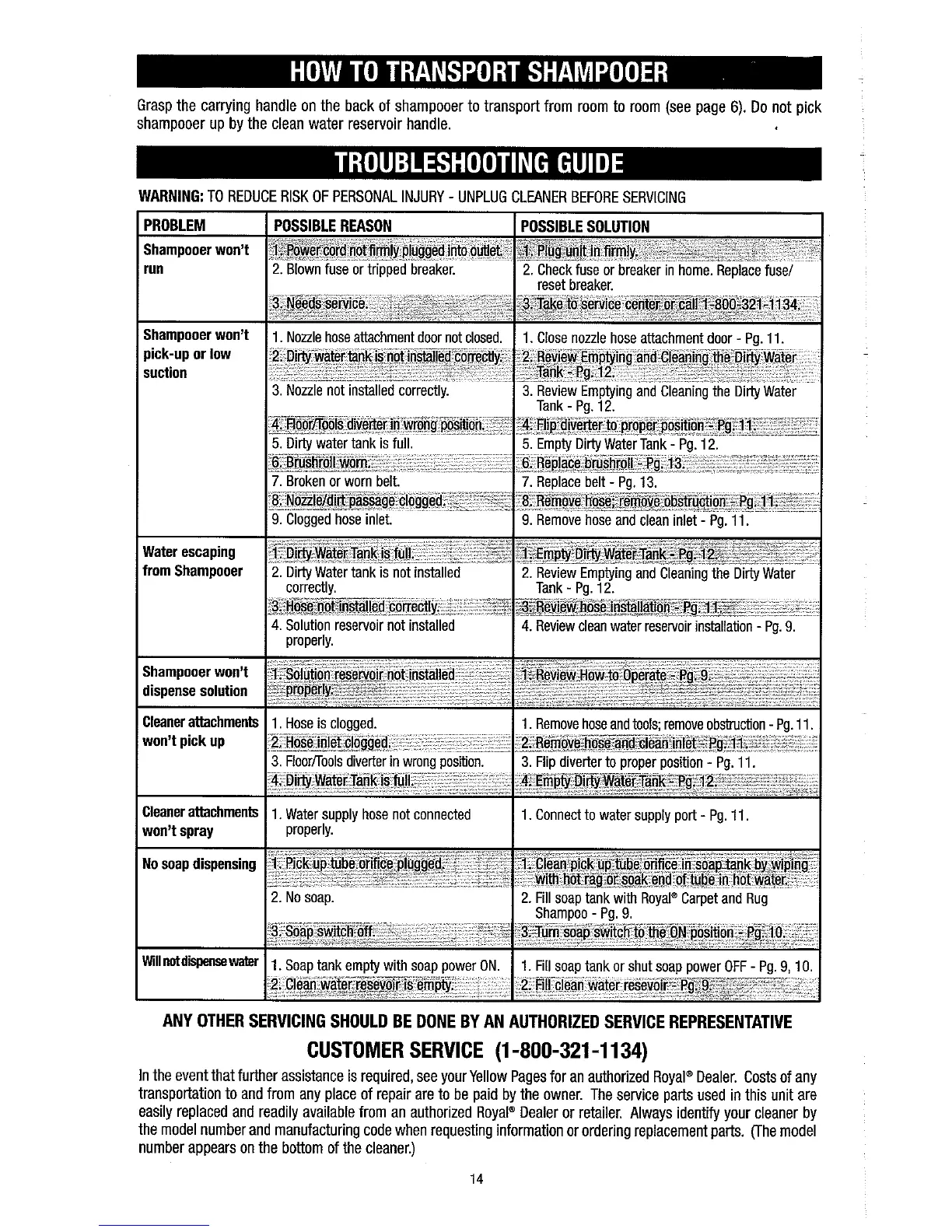 Royal MRY7940 - Troubleshooting Guide; Warning: Unplug Before Servicing