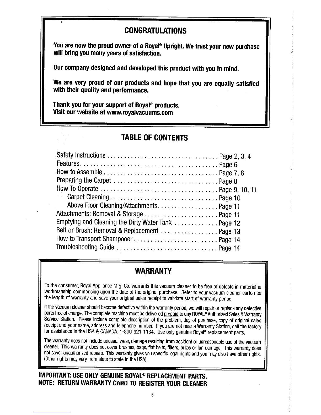 Royal MRY7940 - Warranty Information