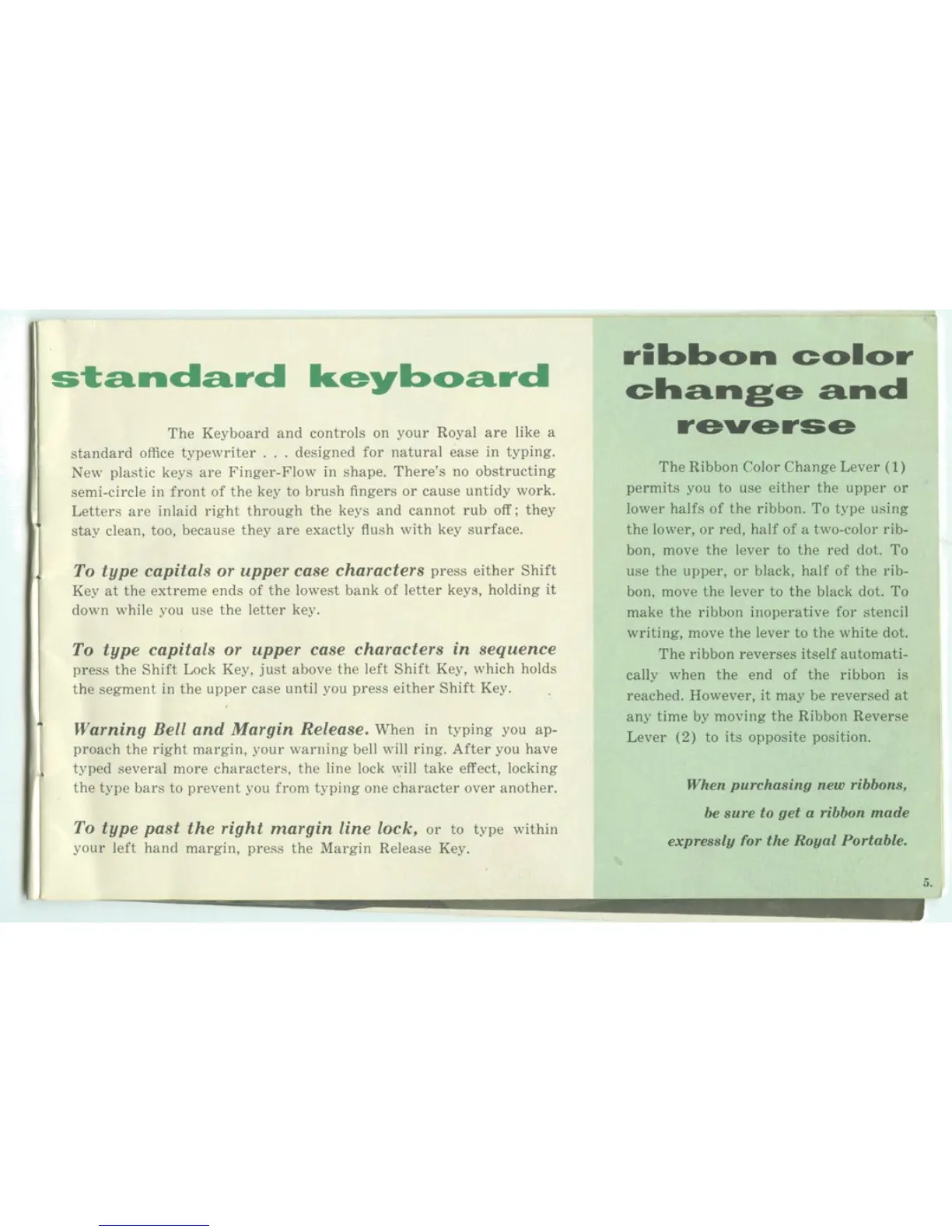 Royal Portable - Standard Keyboard; Ribbon Color Change and Reverse