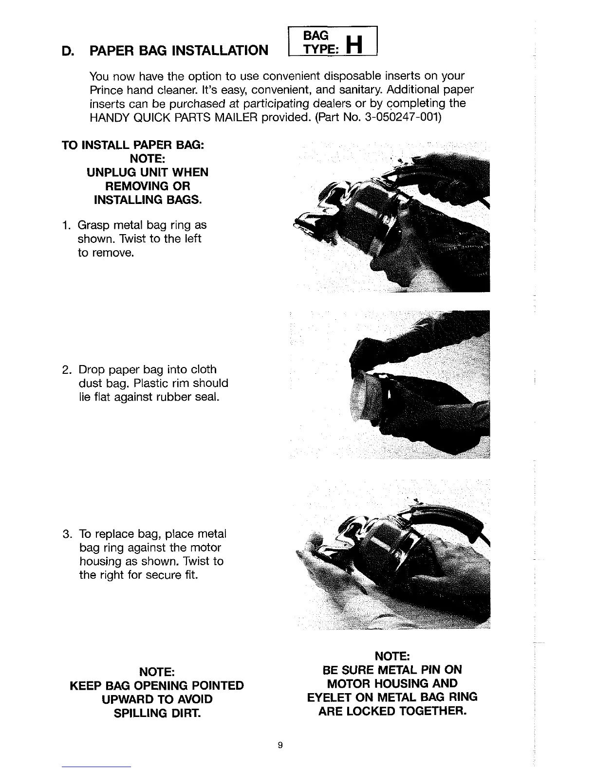 3. To replace bag, place metal