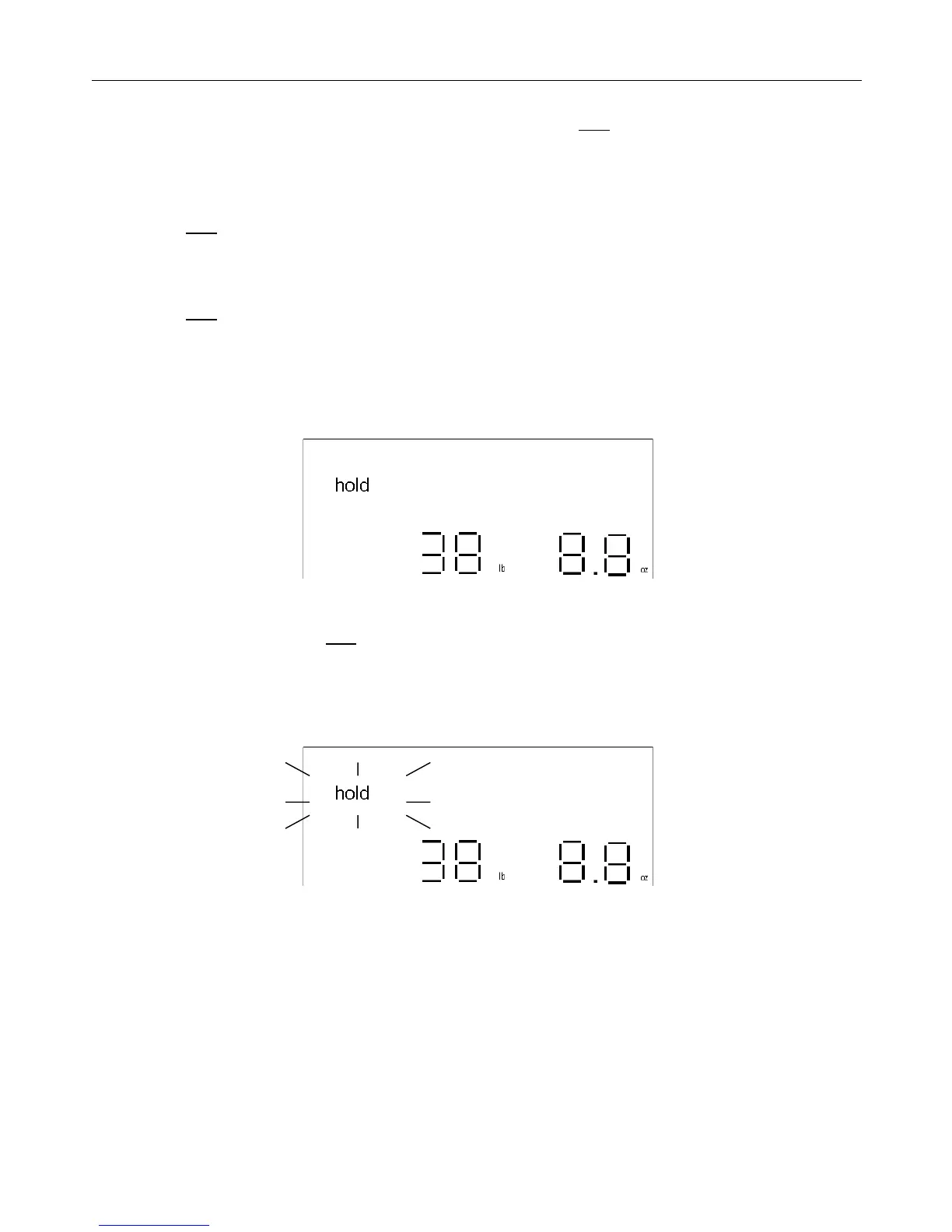 block the scale display, preventing the weight from being read. Once the hold key is pressed, the weight will remain