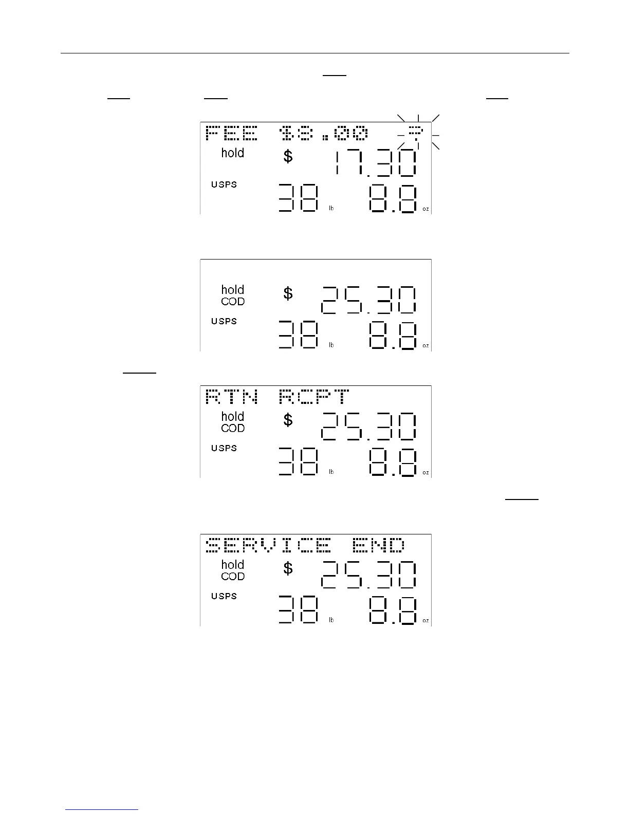 If no additional services are available, the scale will display “SERVICE END” for one second. If the service key is
