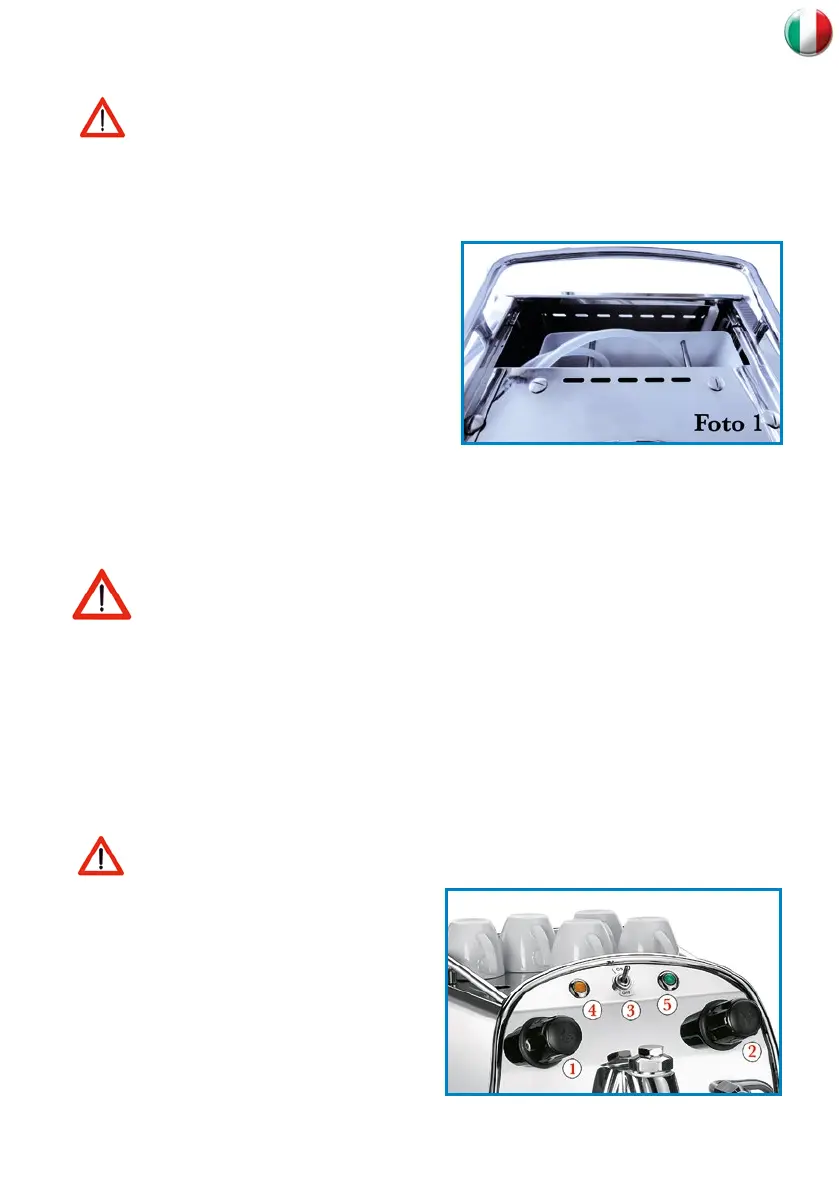 Prima dell’accensione della macchina, si consiglia di controllare la presenza di acqua nella