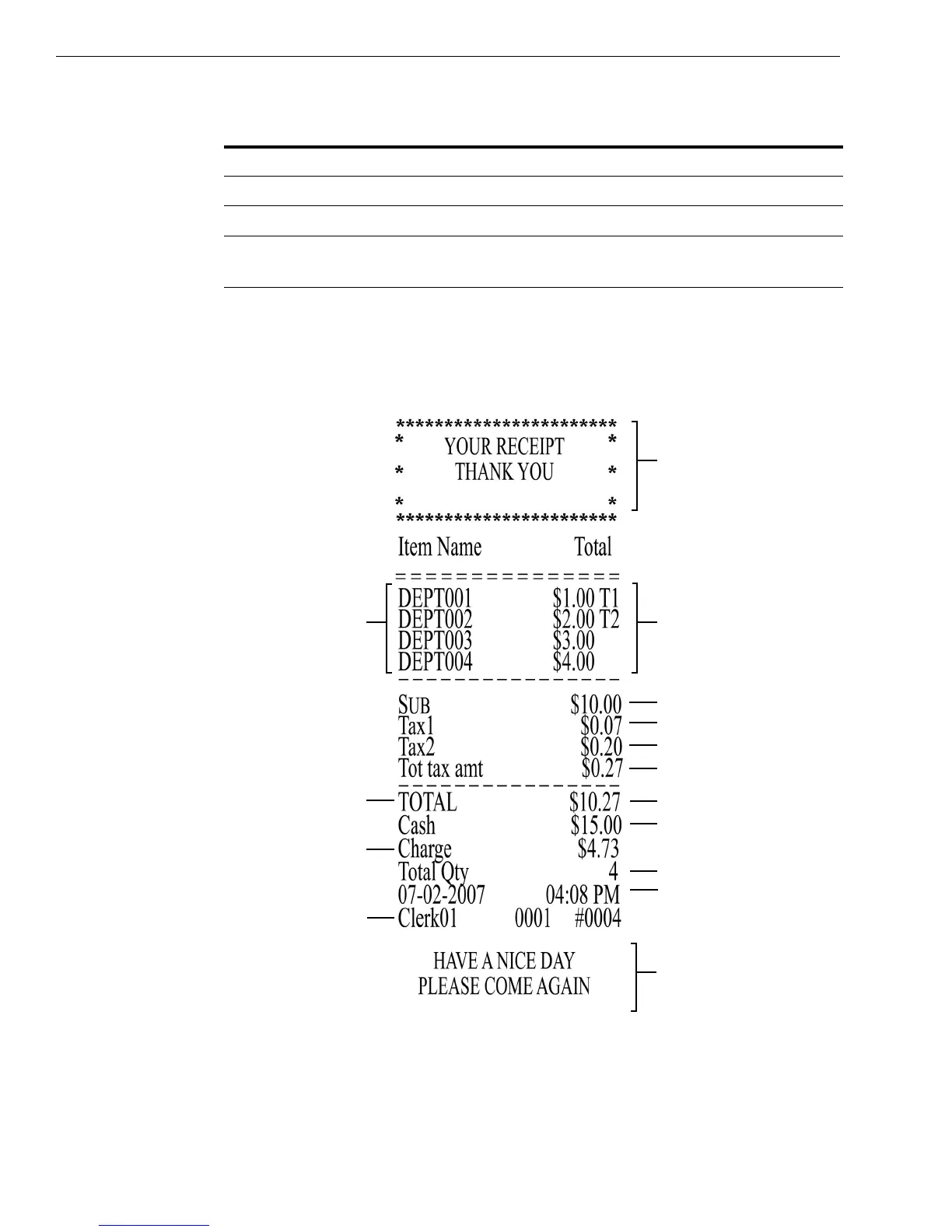 printed on a receipt. Your actual receipt may vary.