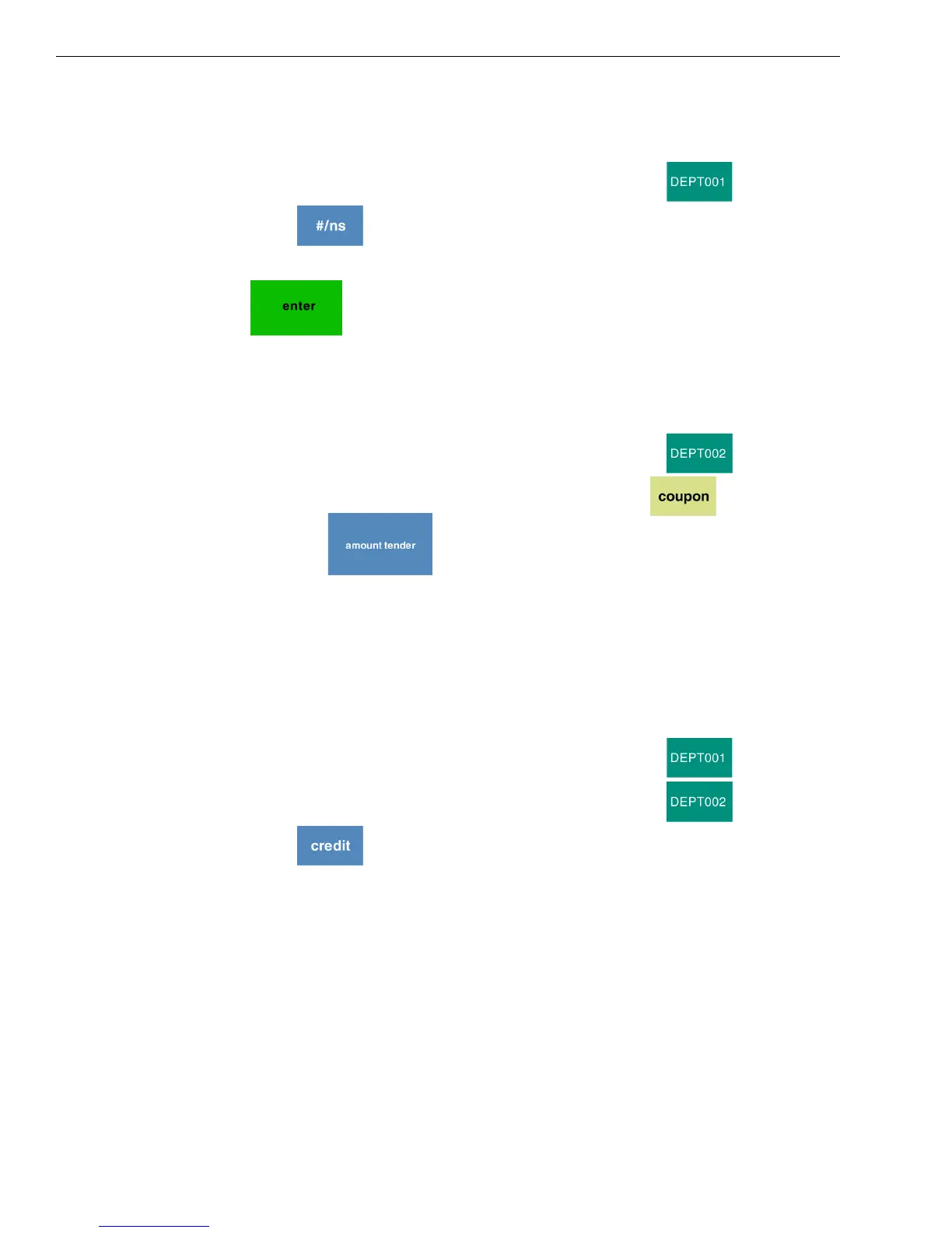 Example 12: Ring up a $1.00 item in Department 1 and $2.00 in Department 2