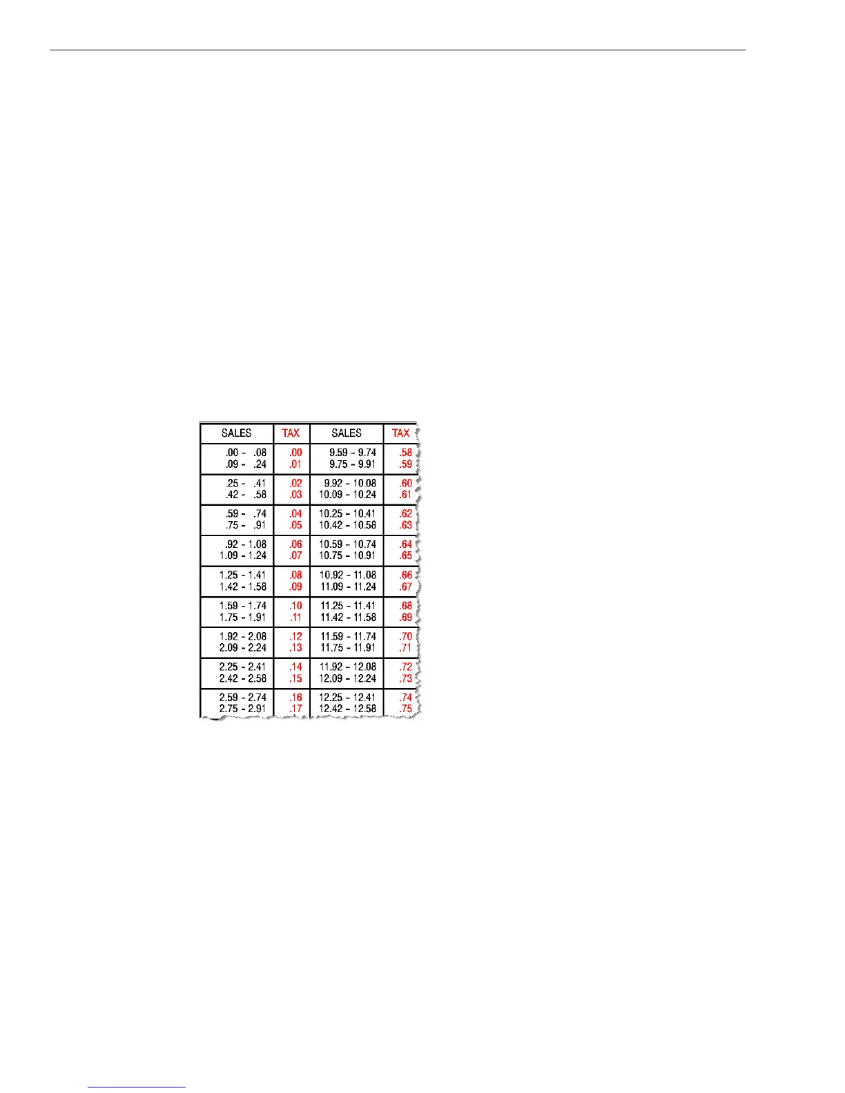 bracket a sale from .25 to .41 is taxed two cents. The tax table progresses