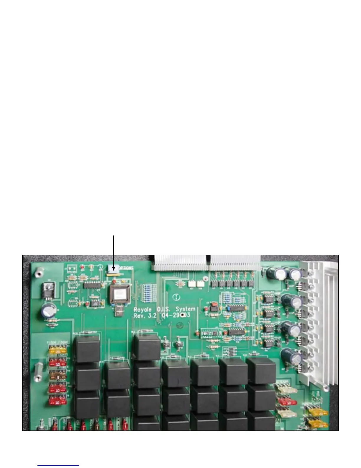 circuit board, upper left corner labeled “OPTIONS,”
