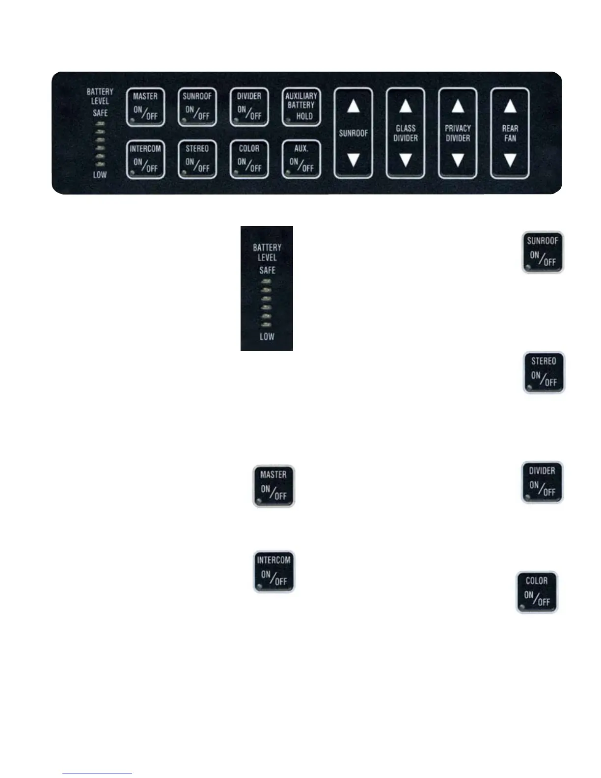 This button controls power to rear cabin