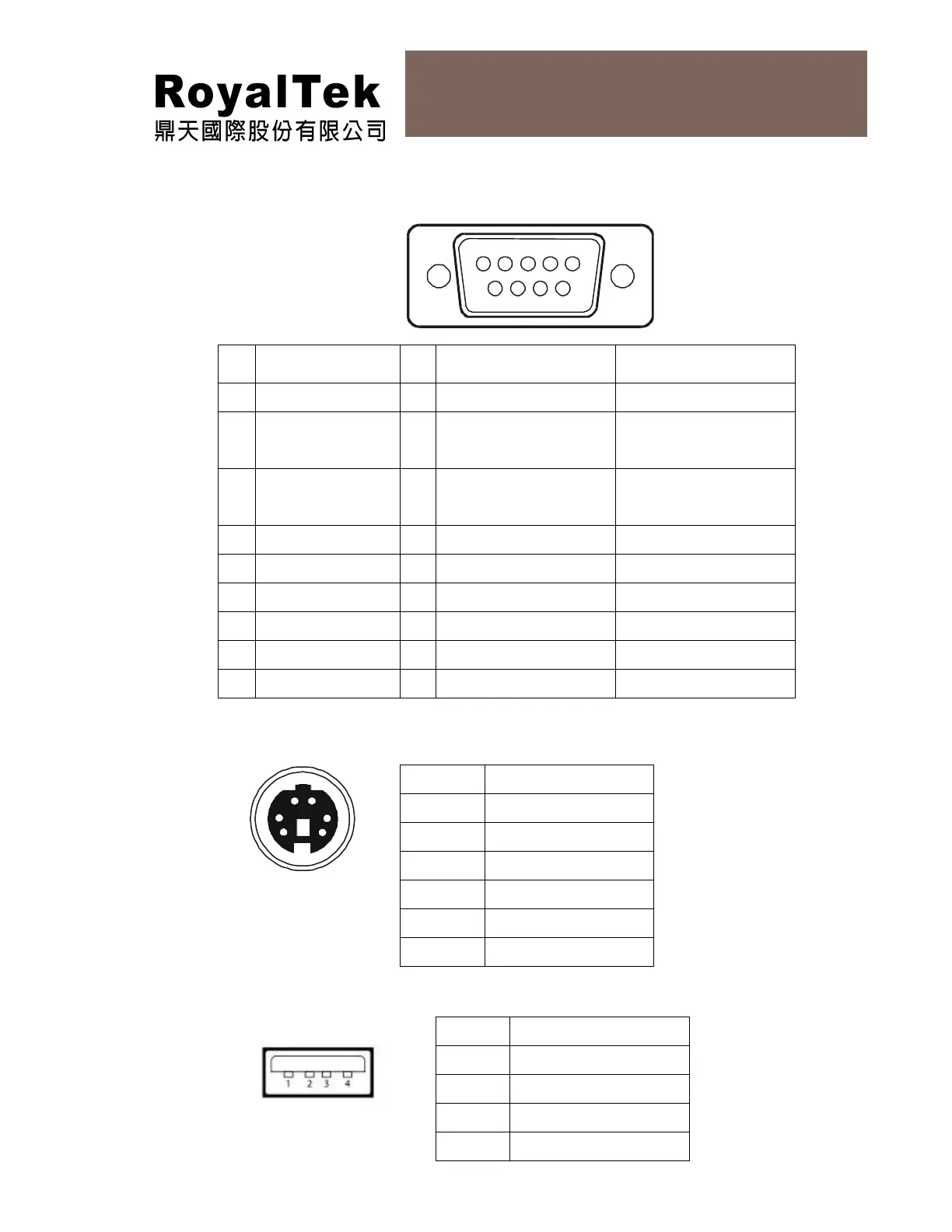 - (Y cable) 9 pin D-SUB Interface Pin Number: