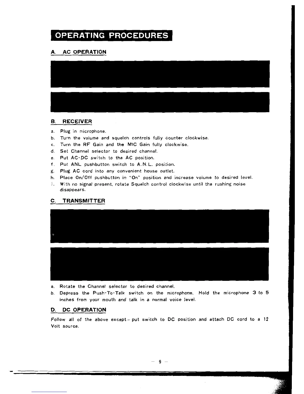 Royce 619 - OPERATING PROCEDURES; AC Power Operation Steps; Receiver Setup and Use; Transmitter Usage Steps