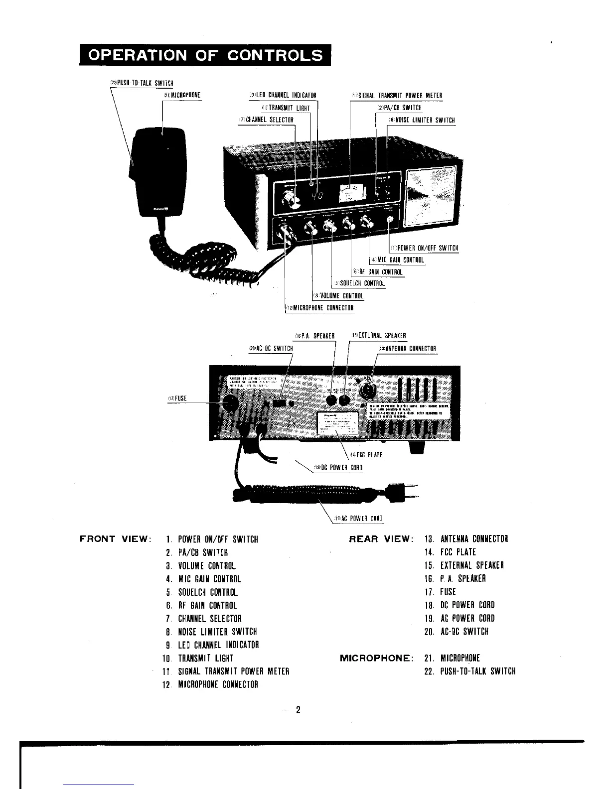 Royce 619 - OPERATION OF CONTROLS; Front Panel Controls; Rear Panel Connections