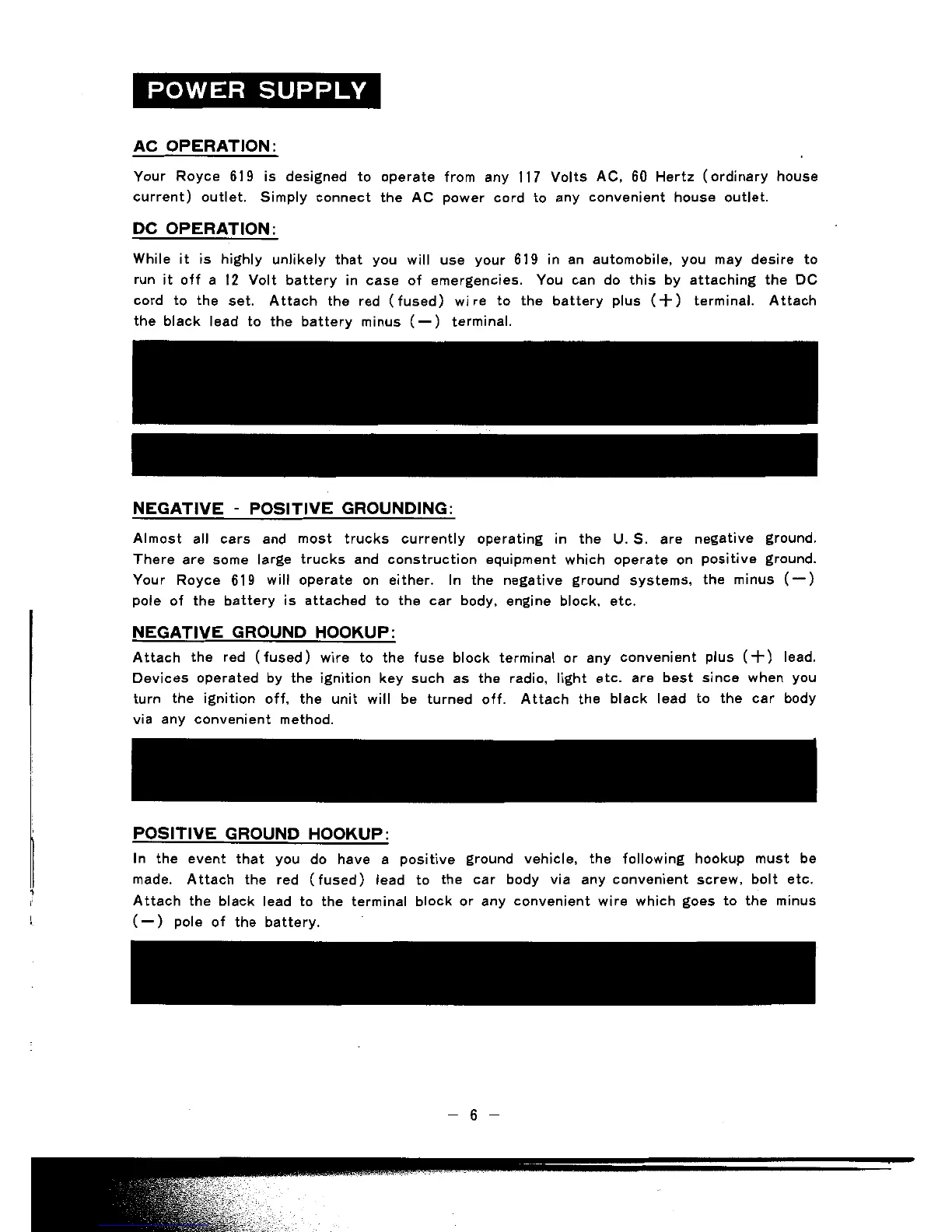 Royce 619 - POWER SUPPLY AND GROUNDING