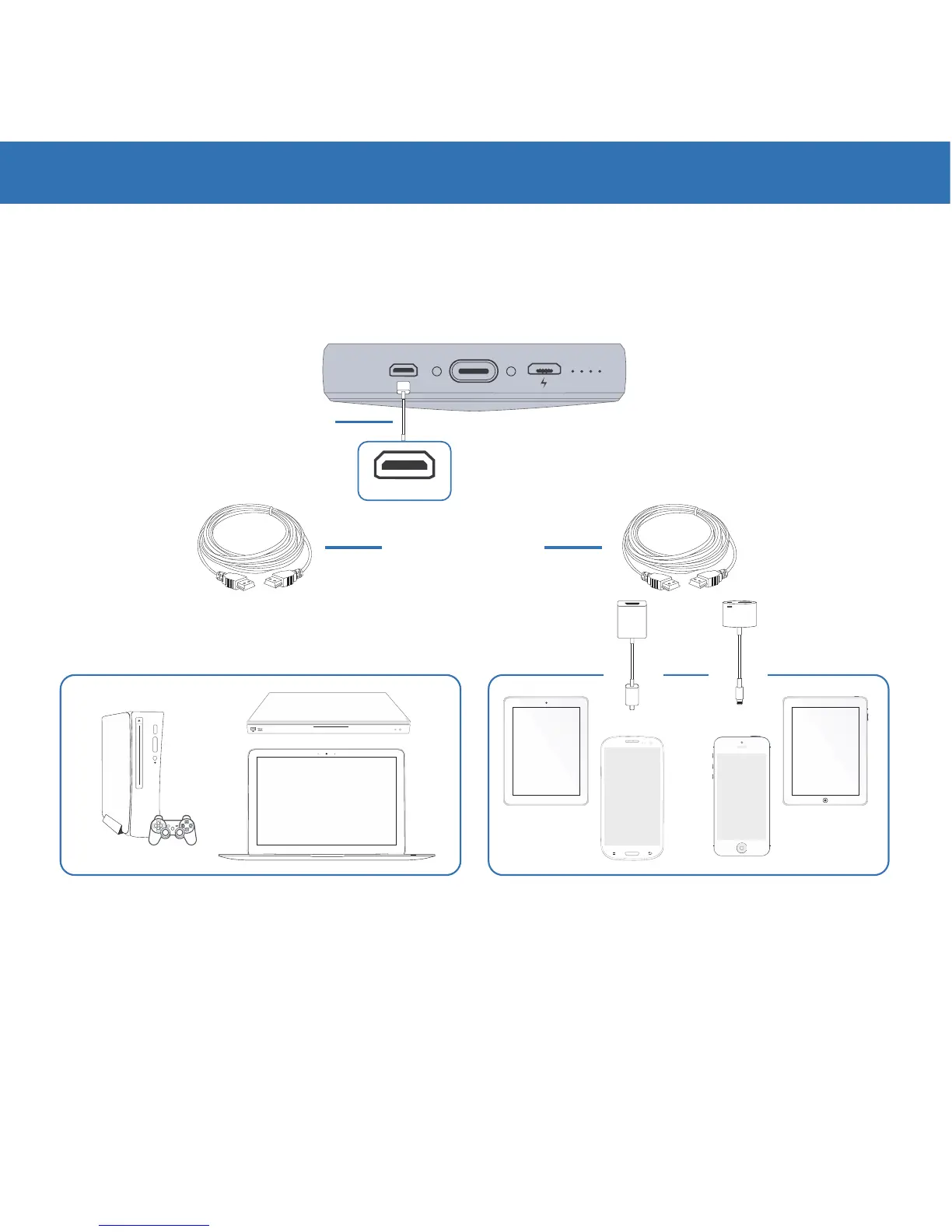 For most devices, connect an HDMI Cable (sold separately) to the female HDMI opening in the