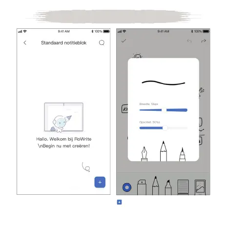 Alles wat je op de RoWrite 2 schrij, wordt direct in de app opgeslagen.