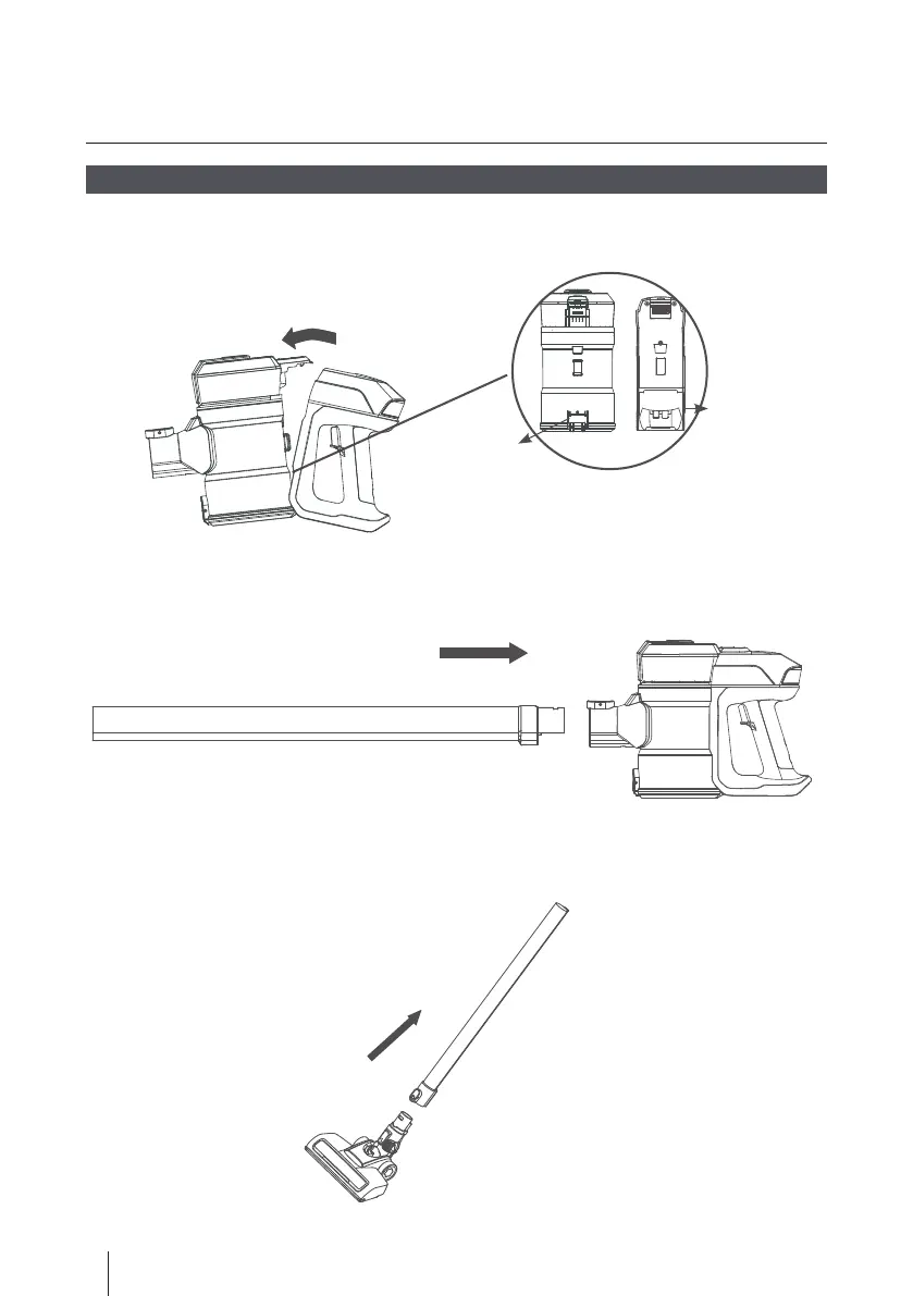 1. Montare l’unità contenitore della polvere e l’unità impugnatura insieme;