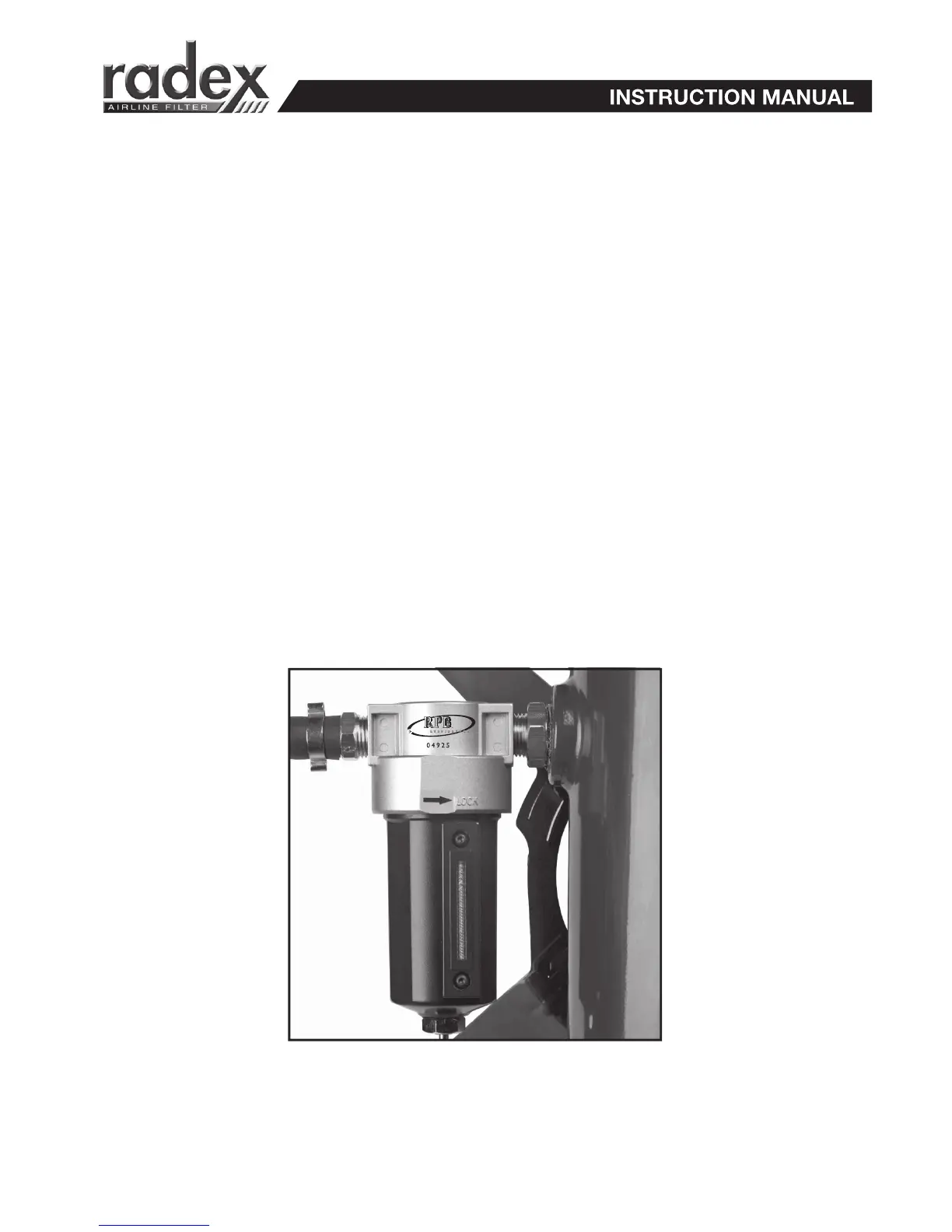 The Radex Airline Filter has a 1” NPT inlet. It is advised to connect a ball valve close to the inlet