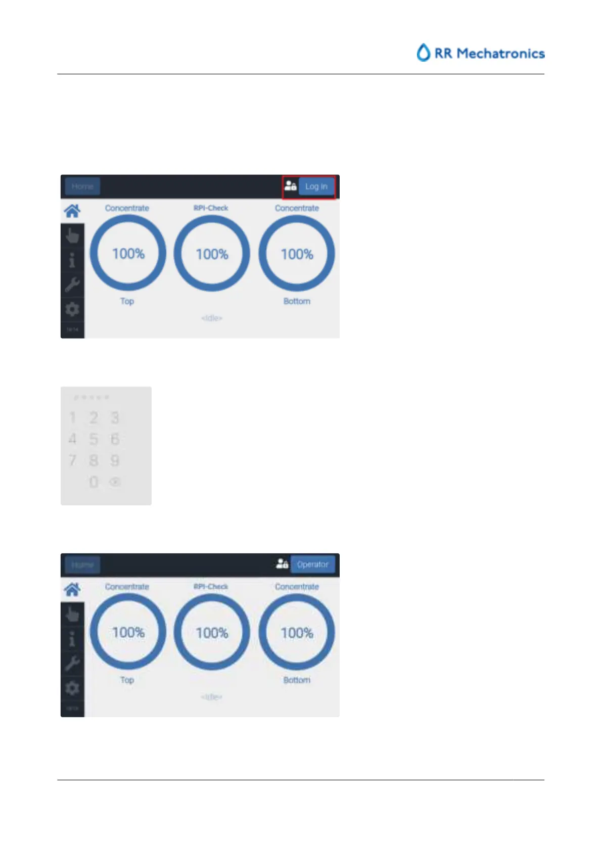 The lab operator has to login to be able to operate the touch screen.