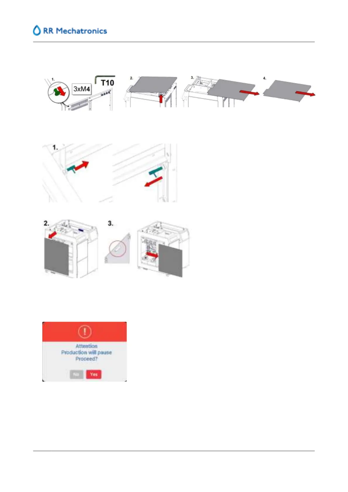1. Remove the top panel by loosening the three M4 bolts(with Torx T10) at the back, lifting up and fully