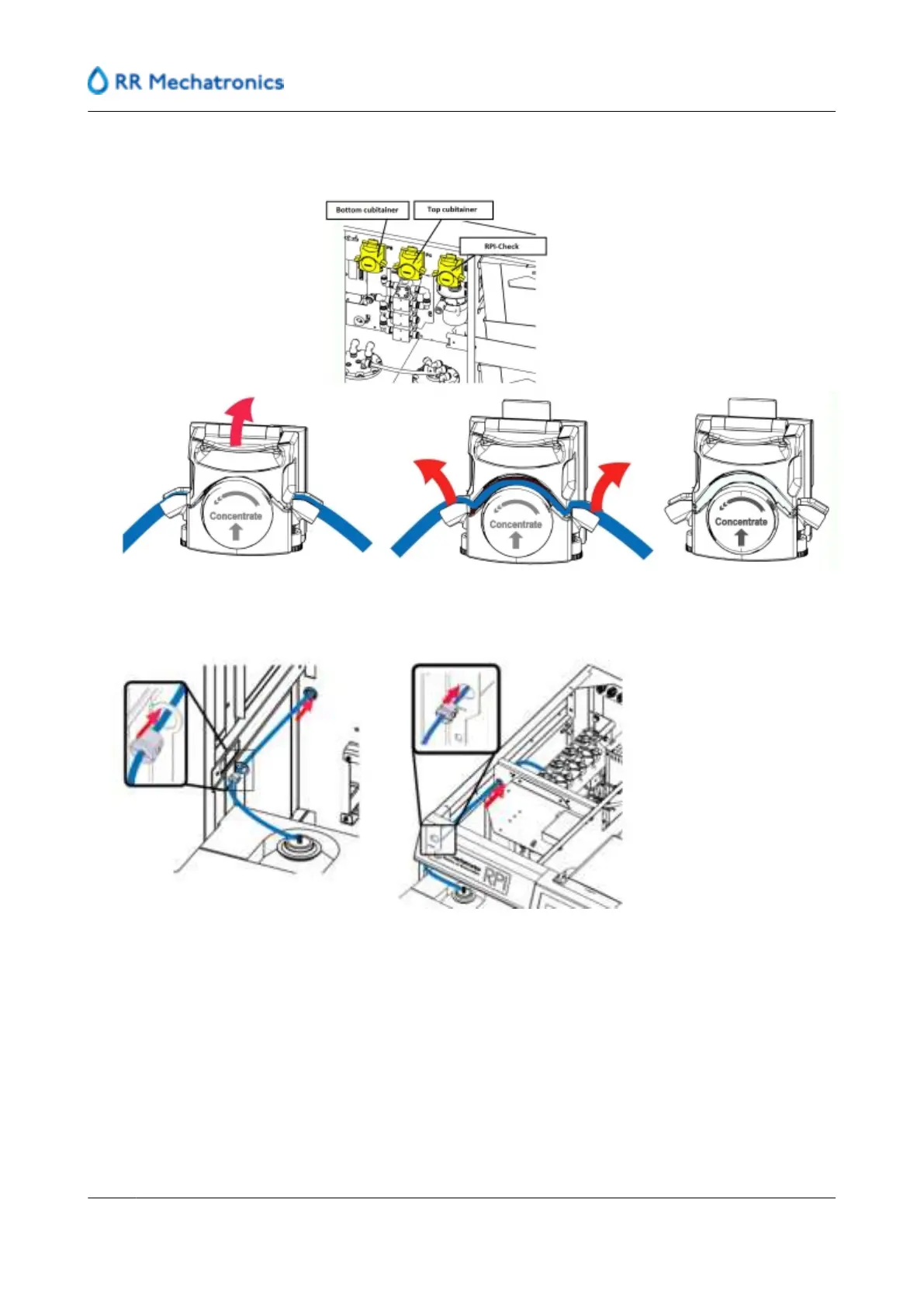 12. Guide the new pump tubes to the holes, push the strain relief in the hole.
