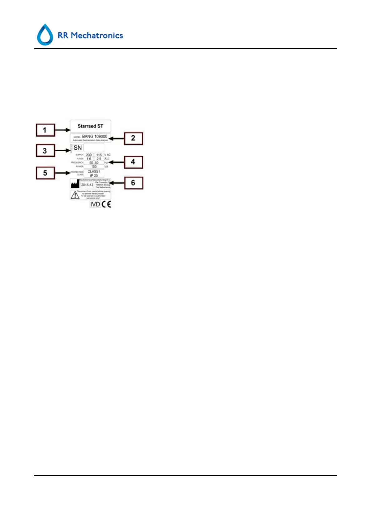 The CE Mark is found on the Mechatronics instrument identification plate, an illustration of which is