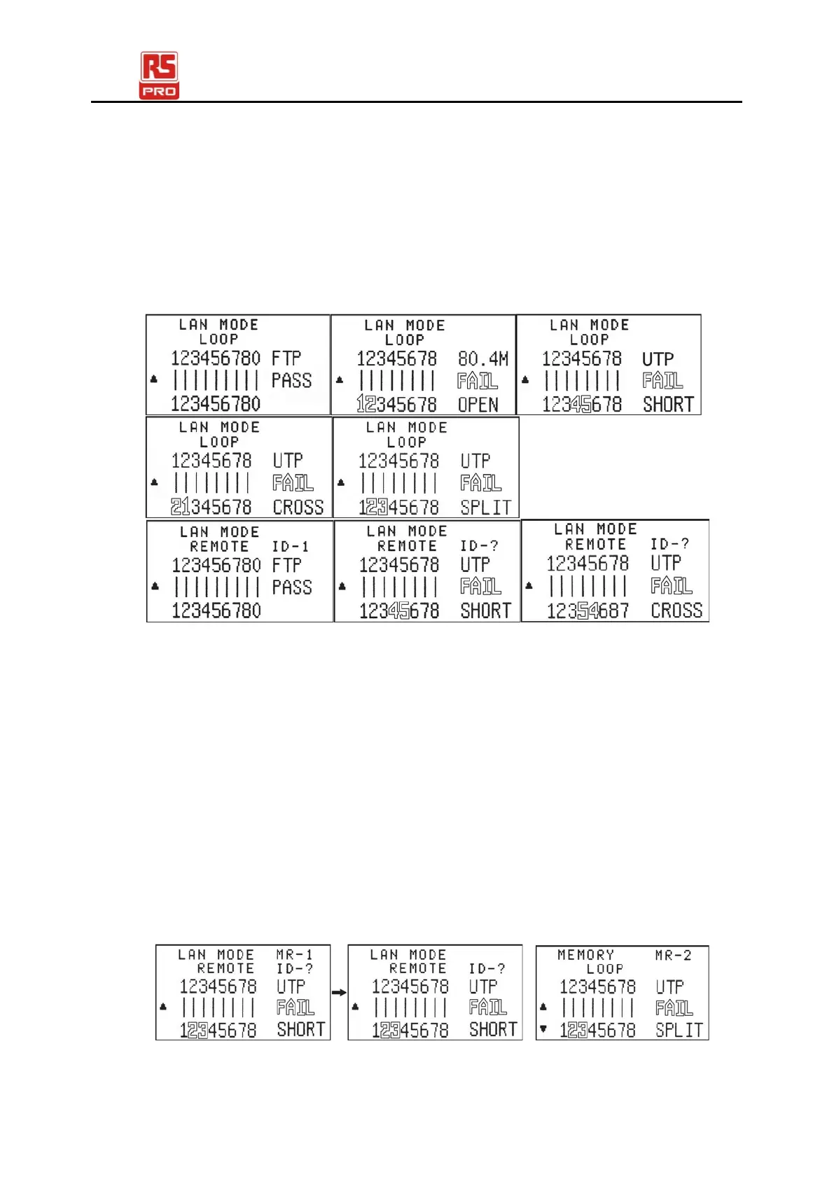 (b). Si la touche Mémoire est actionnée à nouveau, le résultat d'un Test de câble LAN
