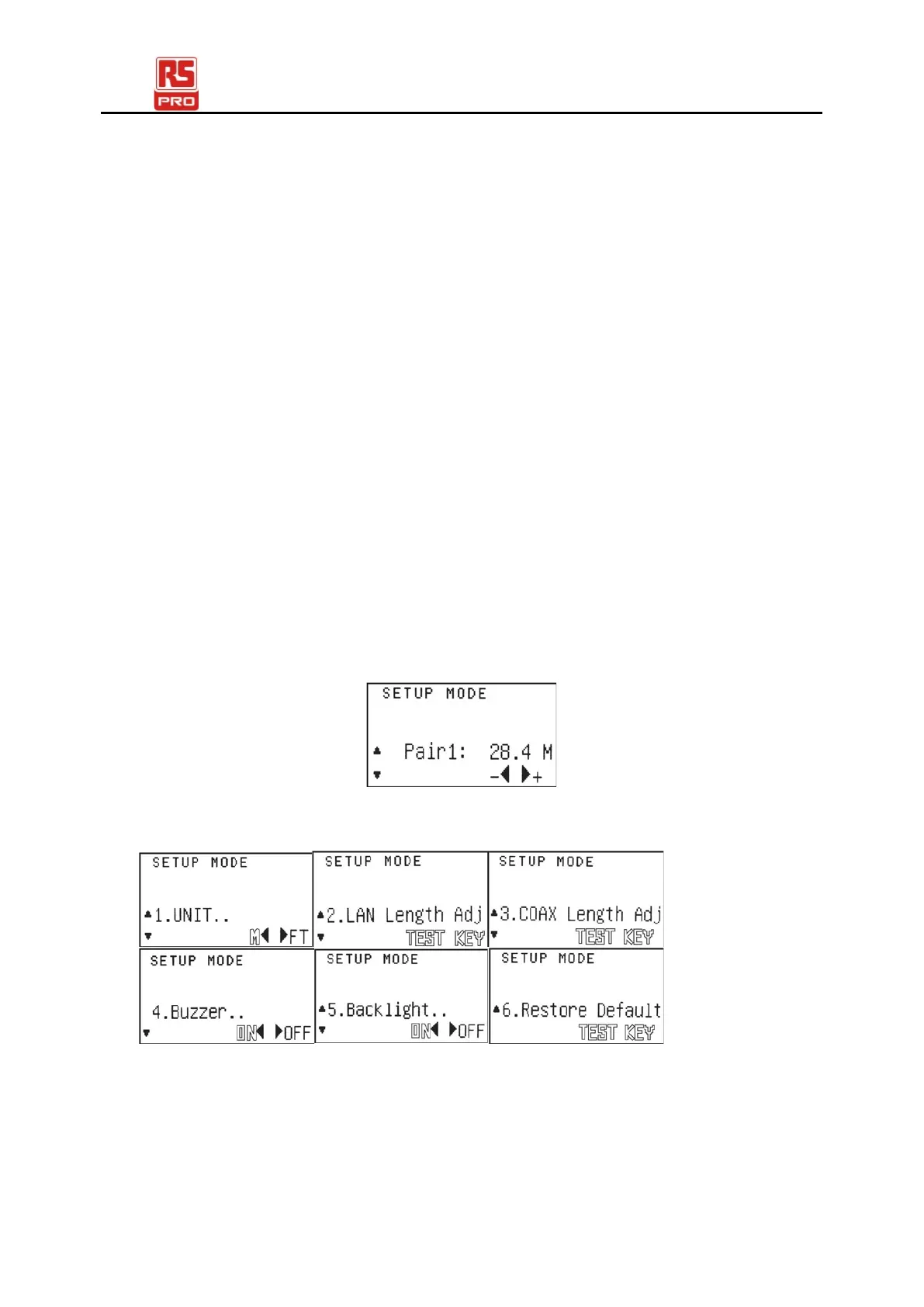 . 当进入(网路线 长度校正)选项时, 萤幕会有(TEST KEY)闪烁字样.