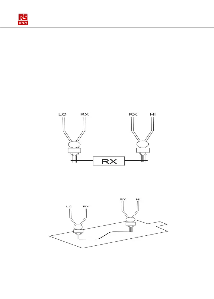 prueba ROJO en la conexión adyacente “RX”; Introduzca el cable de prueba